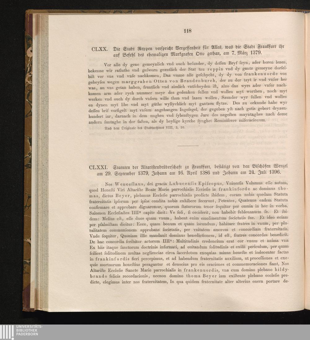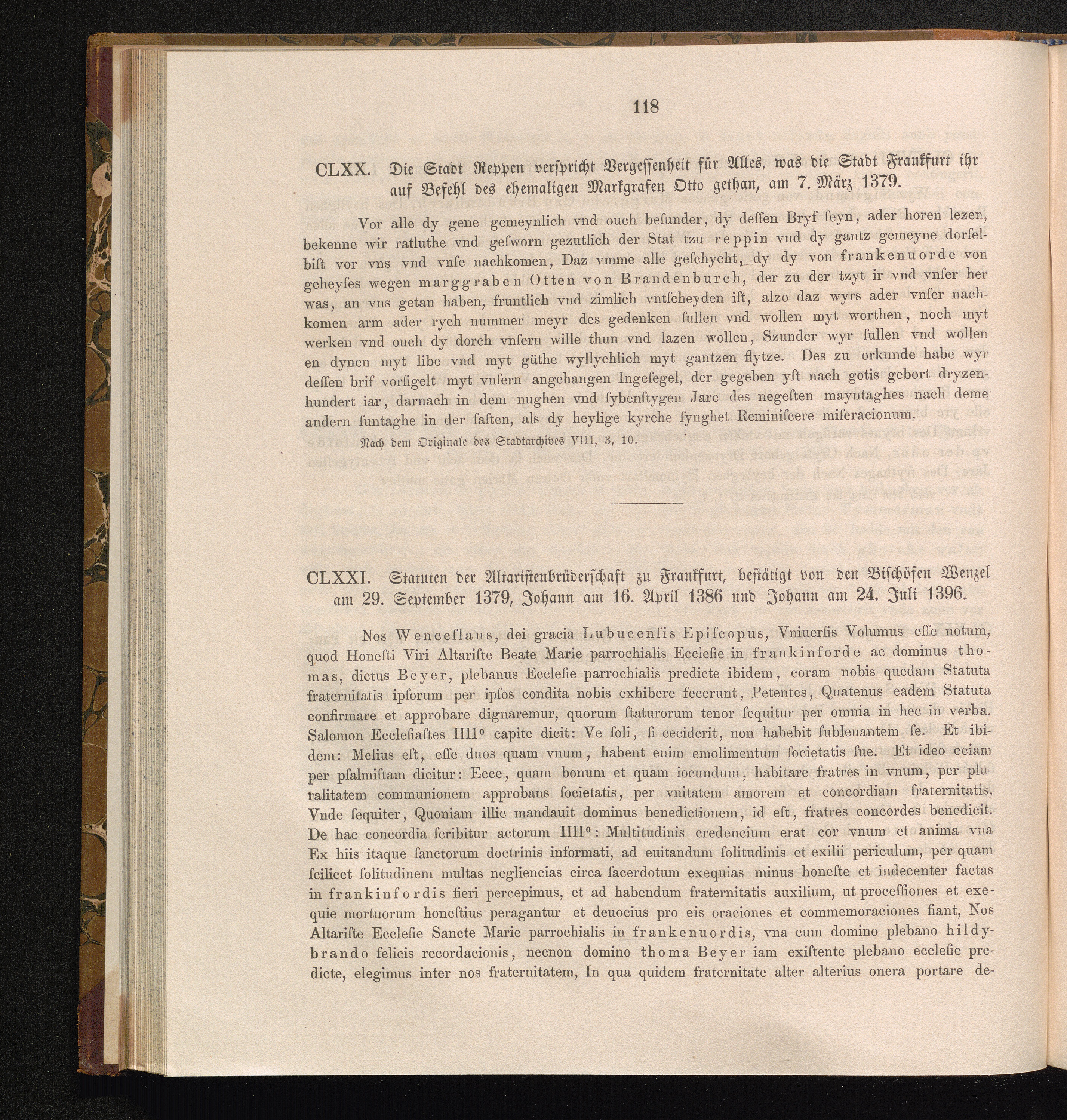 CLXXI. Statuten der Altaristenbrüderschaft zu Frankfurt, bestätigt von den Bischöfen[...]