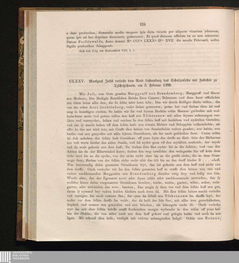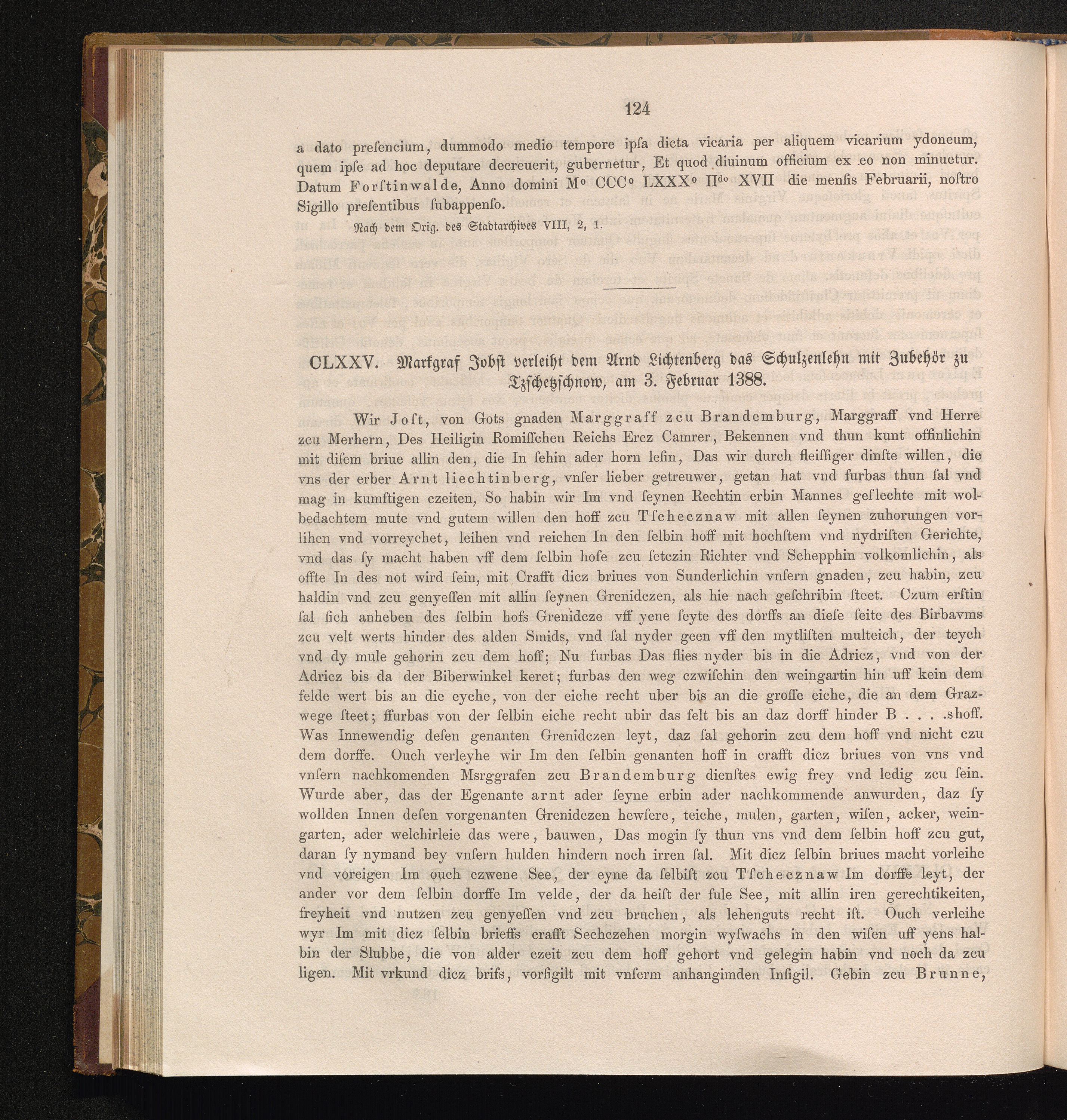 CLXXV. Markgraf Jobst verleiht dem Arnd Lichtenberg das Schulzenlehn mit Zubehör[...]