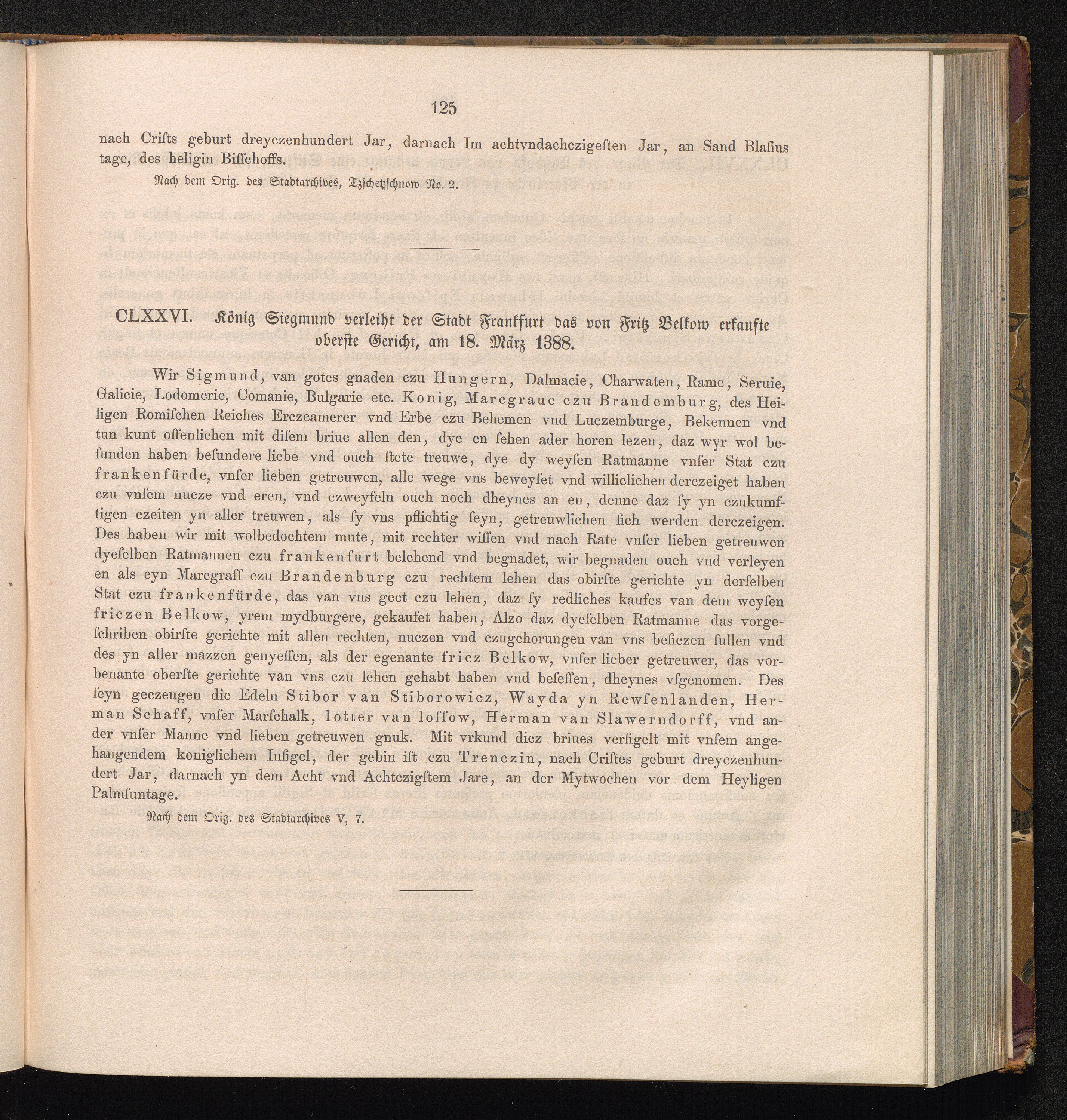 CLXXVI. König Siegmund verleiht der Stadt Frankfurt das von Fritz Belkow erkaufte[...]