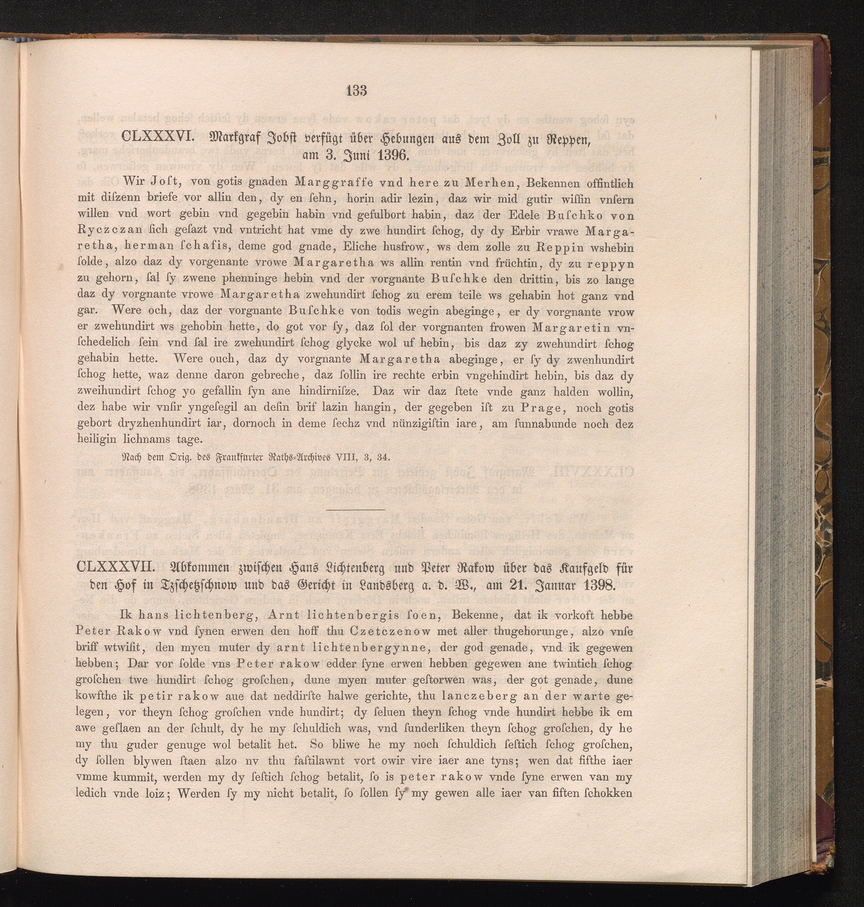 CLXXXVII. Ankommen zwischen Hans Lichtenberg und Peter Rakow über das Kaufgeld für[...]