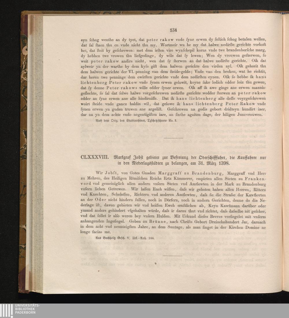 CLXXXVIII. Markgraf Jobst gebietet zur Befreiung der Oberschiffahrt, die Kauffahrer[...]