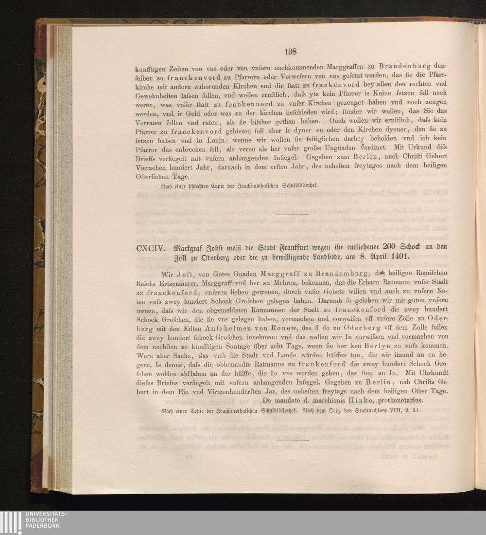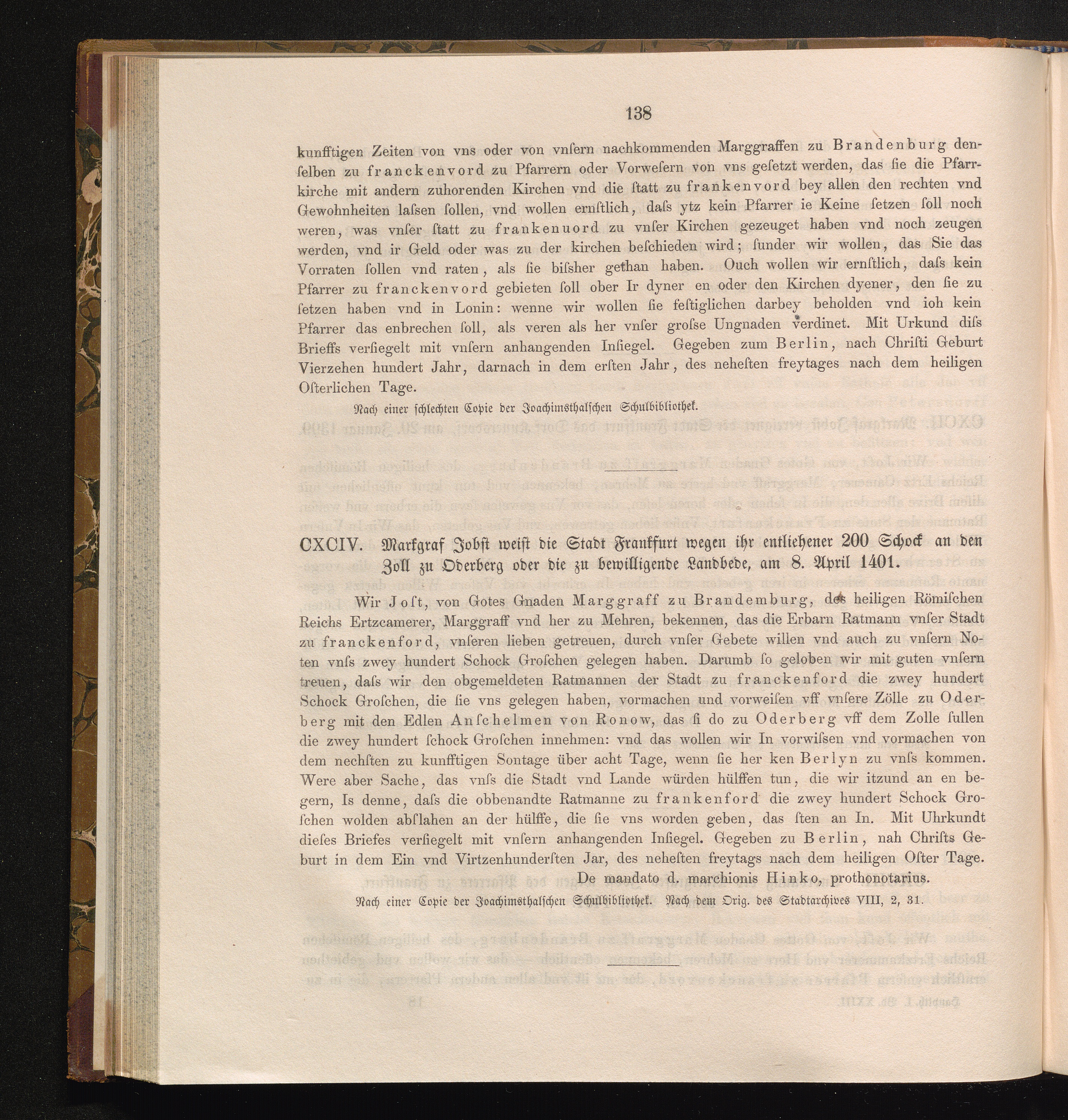 CXCIV. Markgraf Jobst weist die Stadt Frankfurt wegen ihr entliehener 200 Schock[...]