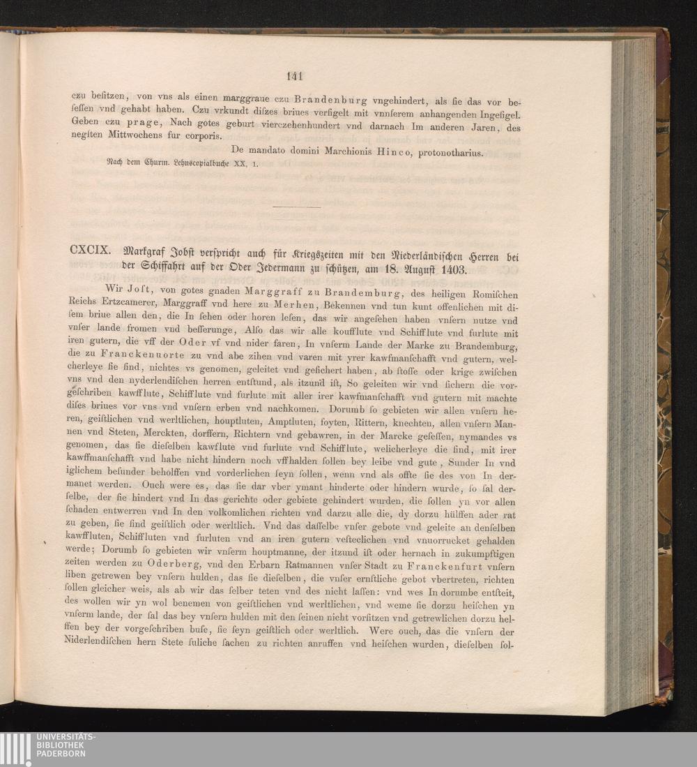 CXCIX. Markgraf Jobst verspricht auch für Kriegszeiten mit den Niederländischen Herren[...]