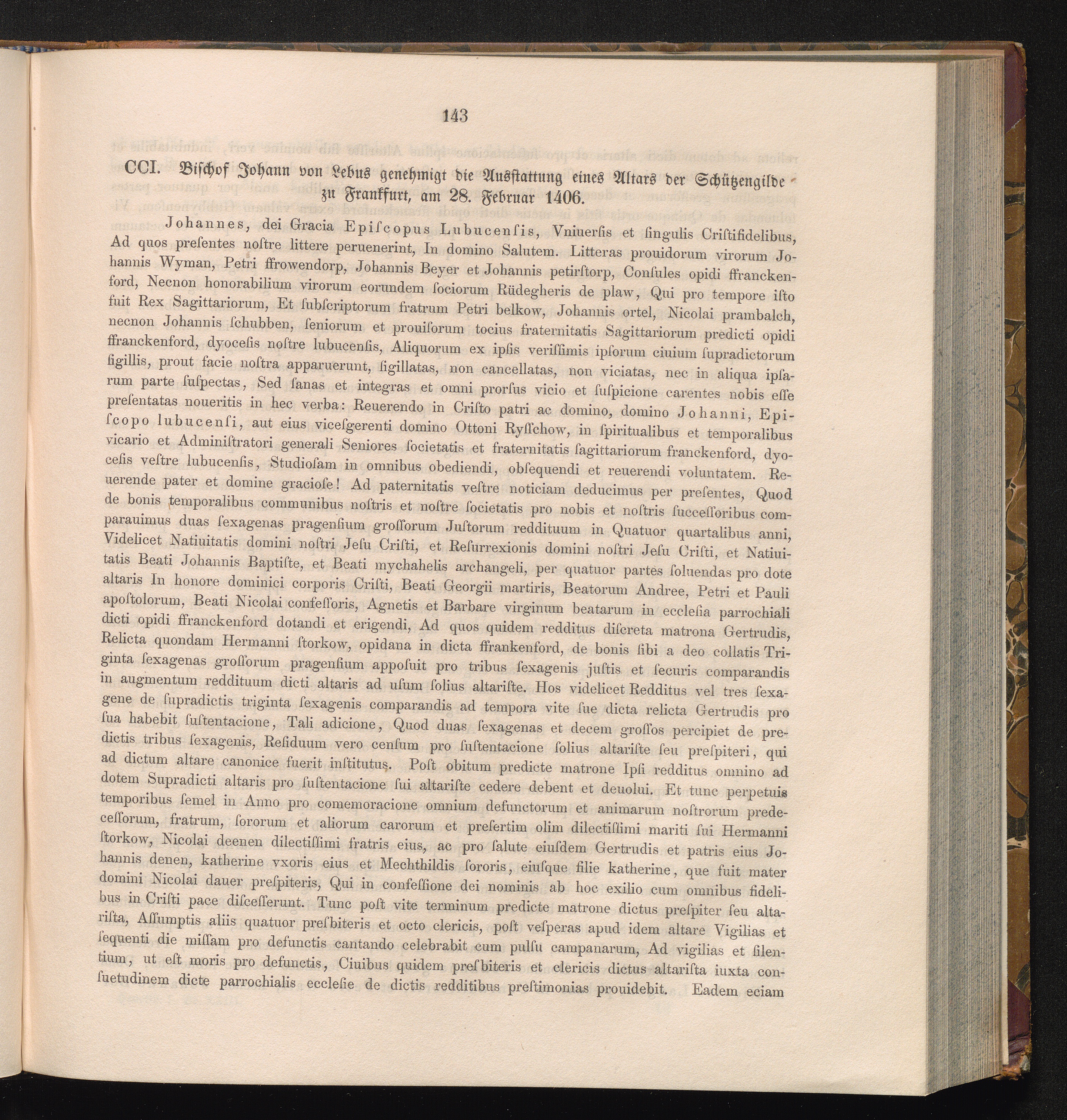 CCI. Bischof Johann von Lebus genehmigt die Ausstattung eines Altars der Schützengilde[...]