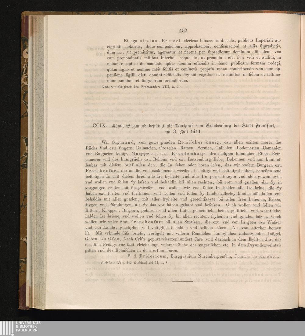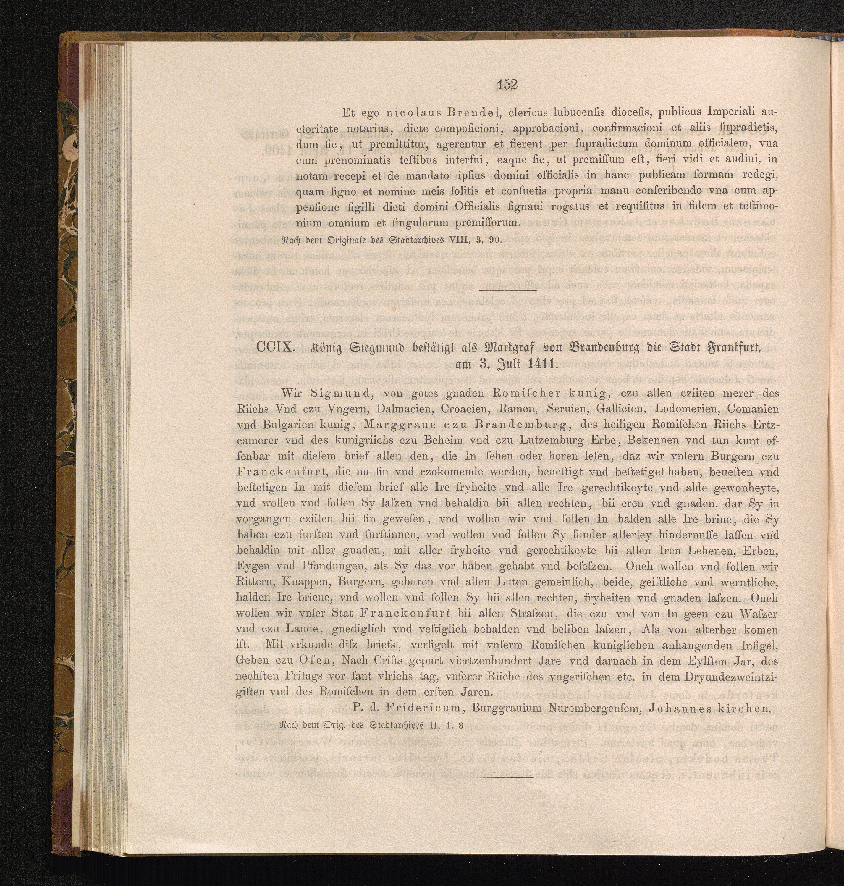 CCIX. König Siegmund bestätigt als Markgraf von Brandenburg die Stadt Frankfurt,[...]