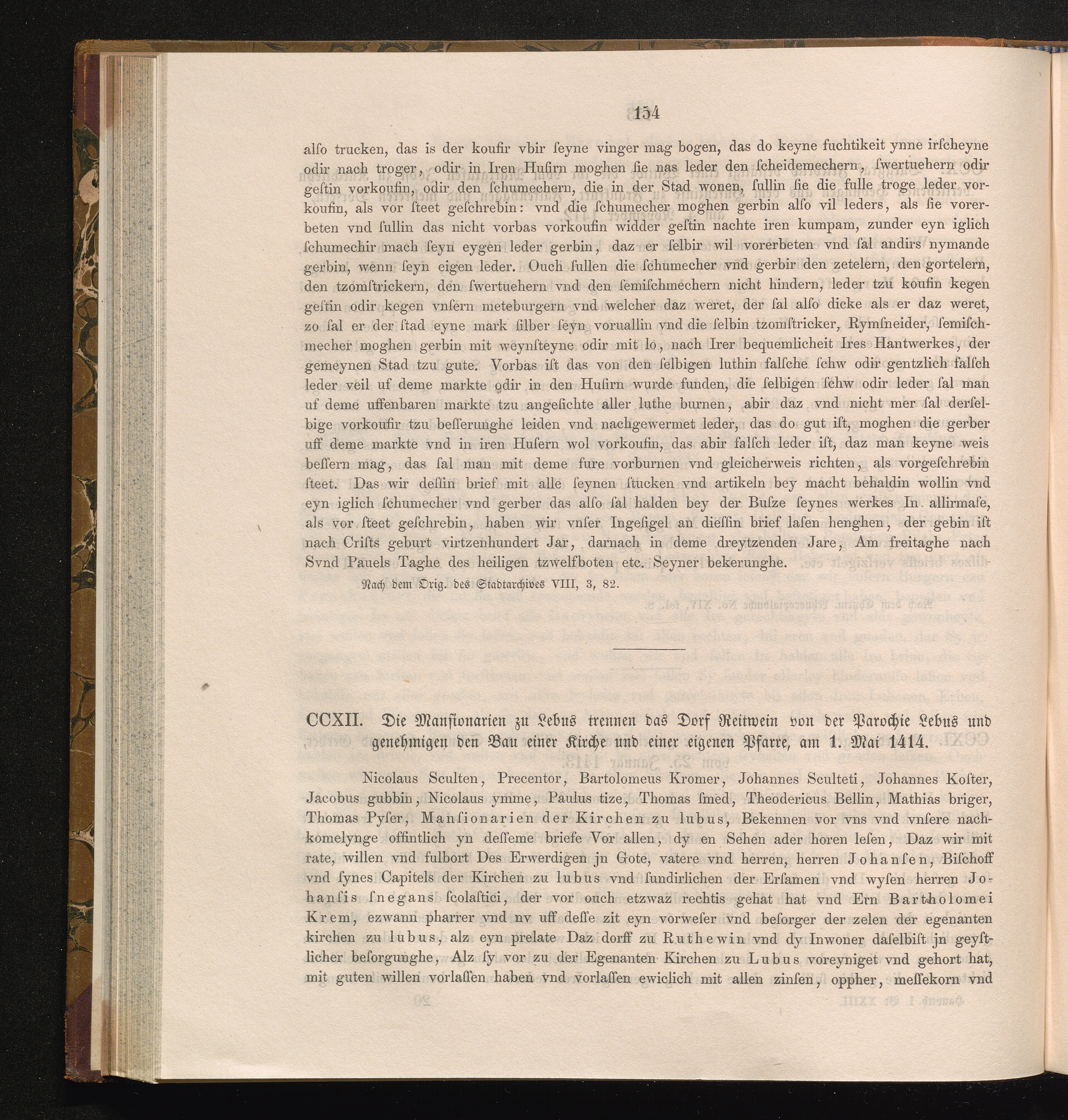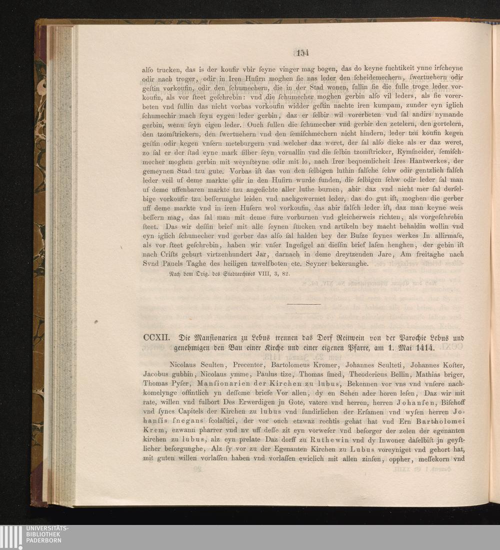 CCXII. Die Mansionarien zu Lebus trennen das Dorf Reitwein von der Parochie Lebus[...]