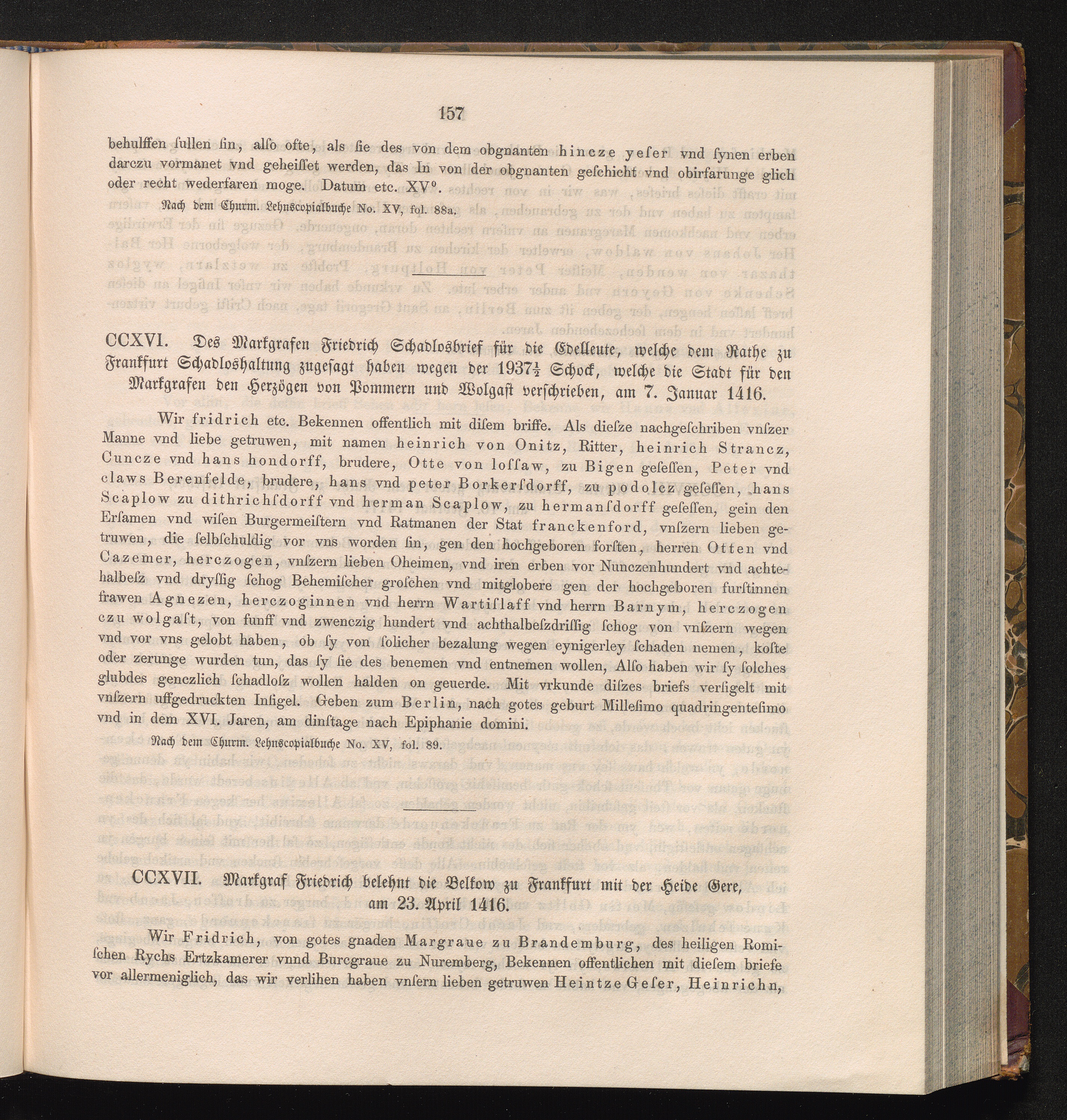 CCXVII. Markgraf Friedrich belehnt die Belkow zu Frankfurt mit der Heide Gere, am[...]
