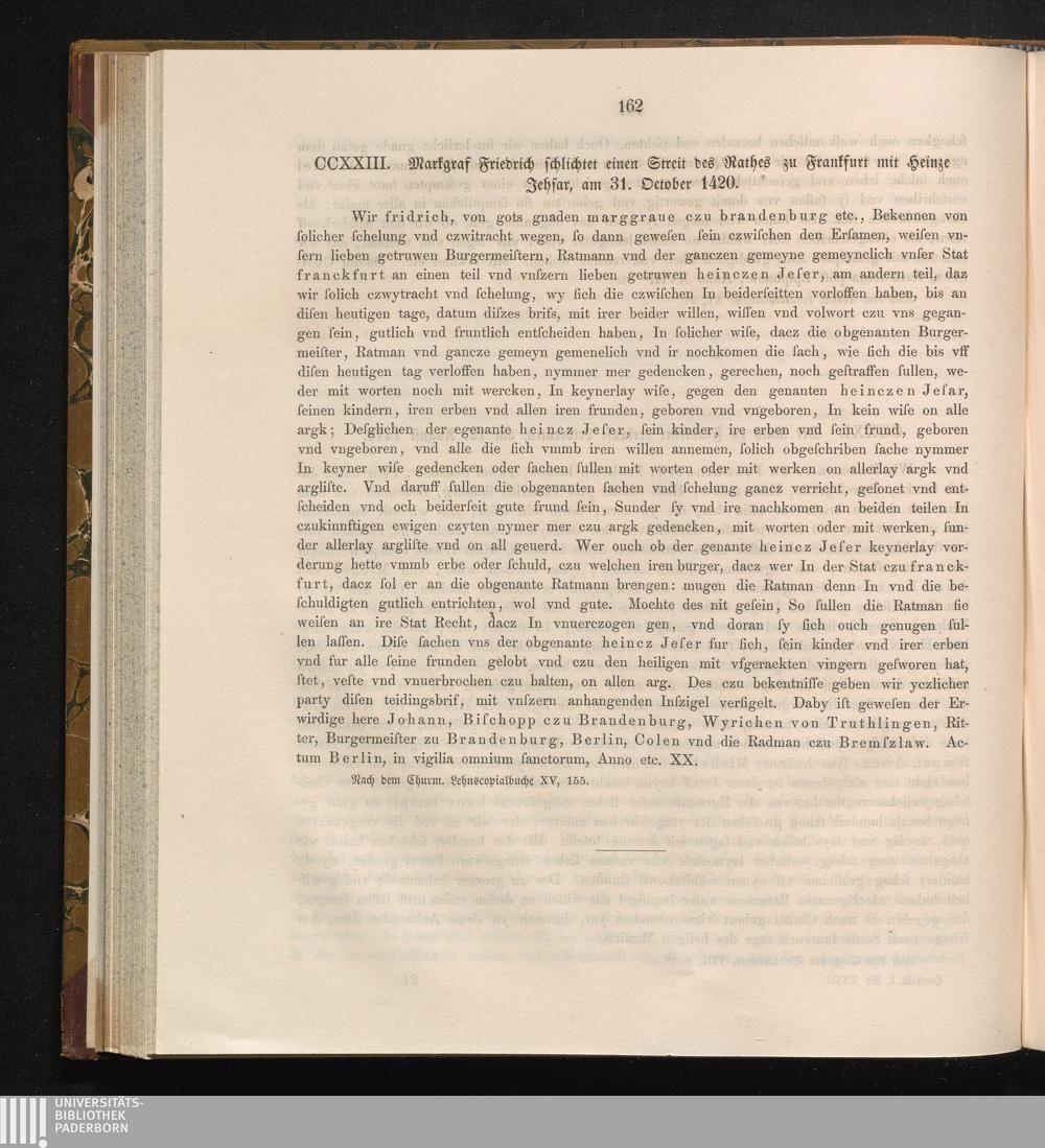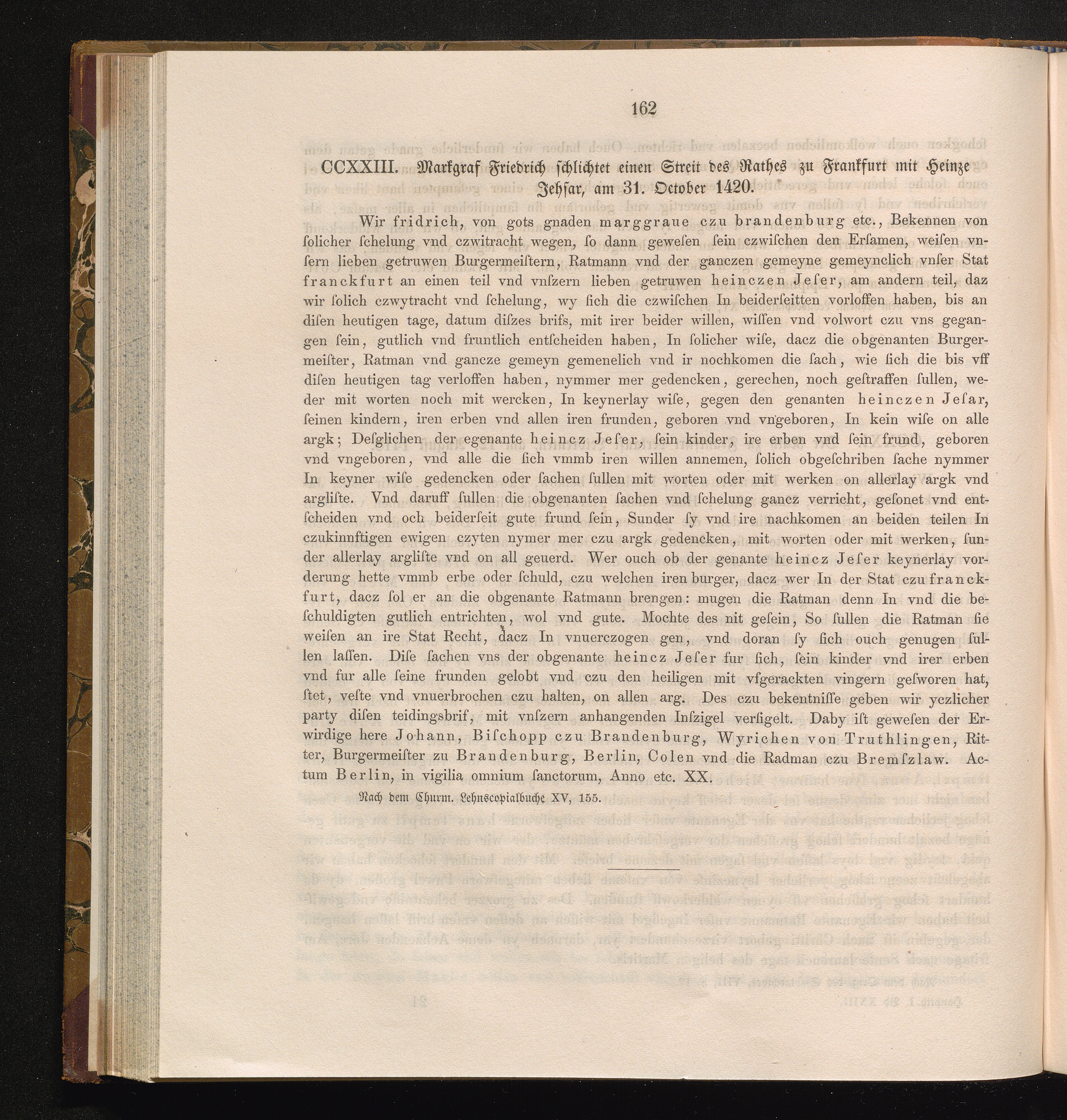 CCXXIII. [i.e. CCXXII.] Markgraf Friedrich schlichtet einen Streit des Rathes zu[...]