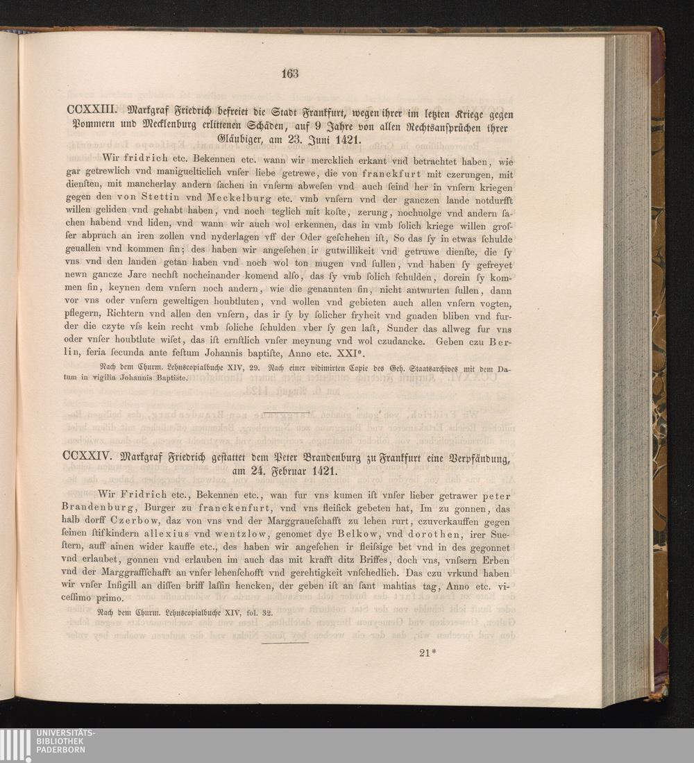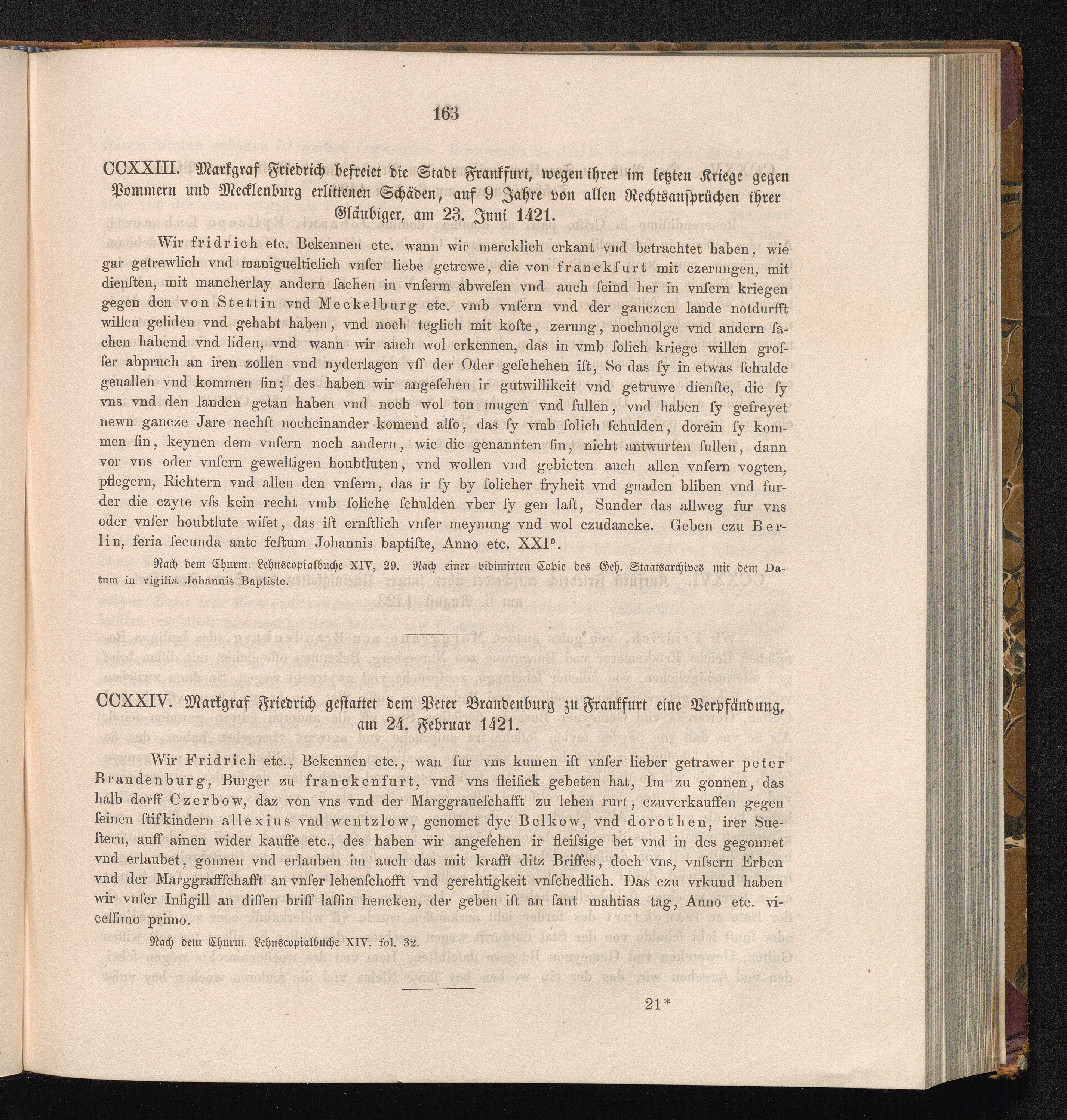 CCXXIV. Markgraf Friedrich gestattet dem Peter Brandenburg zu Frankfurt eine Verpfändung,[...]