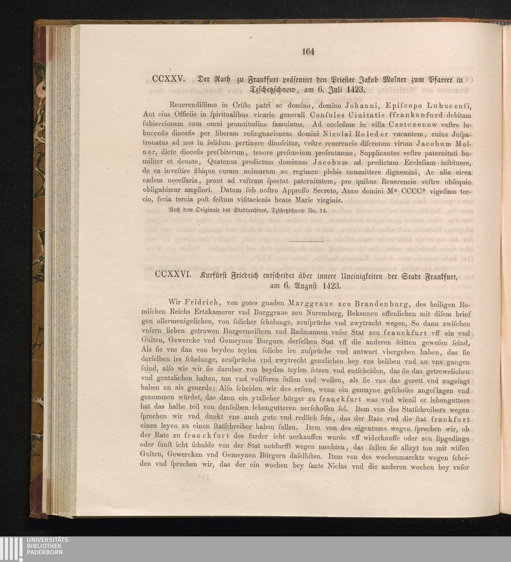 CCXXVI. Kurfürst Friedrich entscheidet über innere Uneinigkeiten der Stadt Frankfurt,[...]