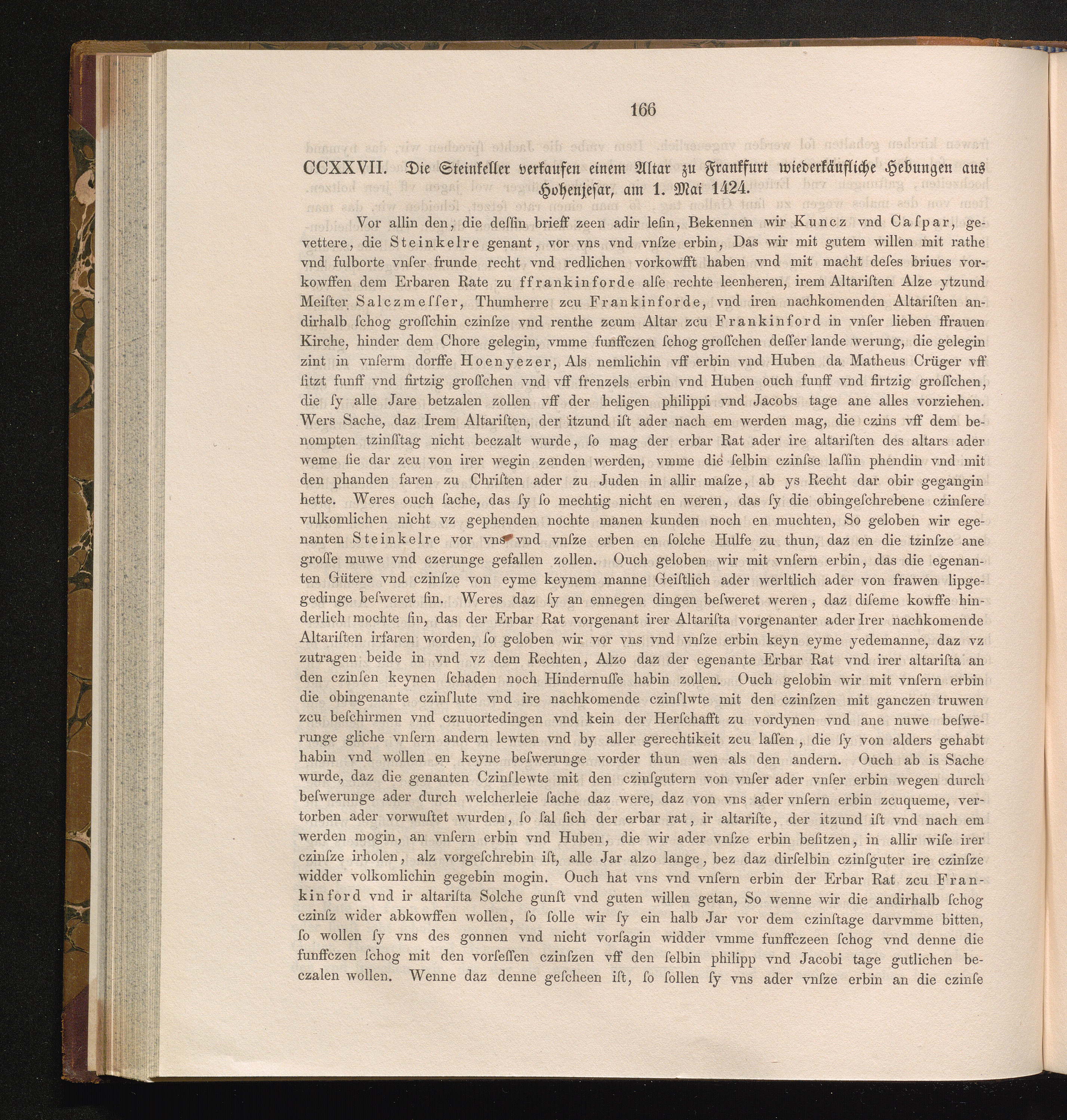 CCXXVII. Die Steinkeller verkaufen einem Altar zu Frankfurt wiederkäufliche Hebungen[...]