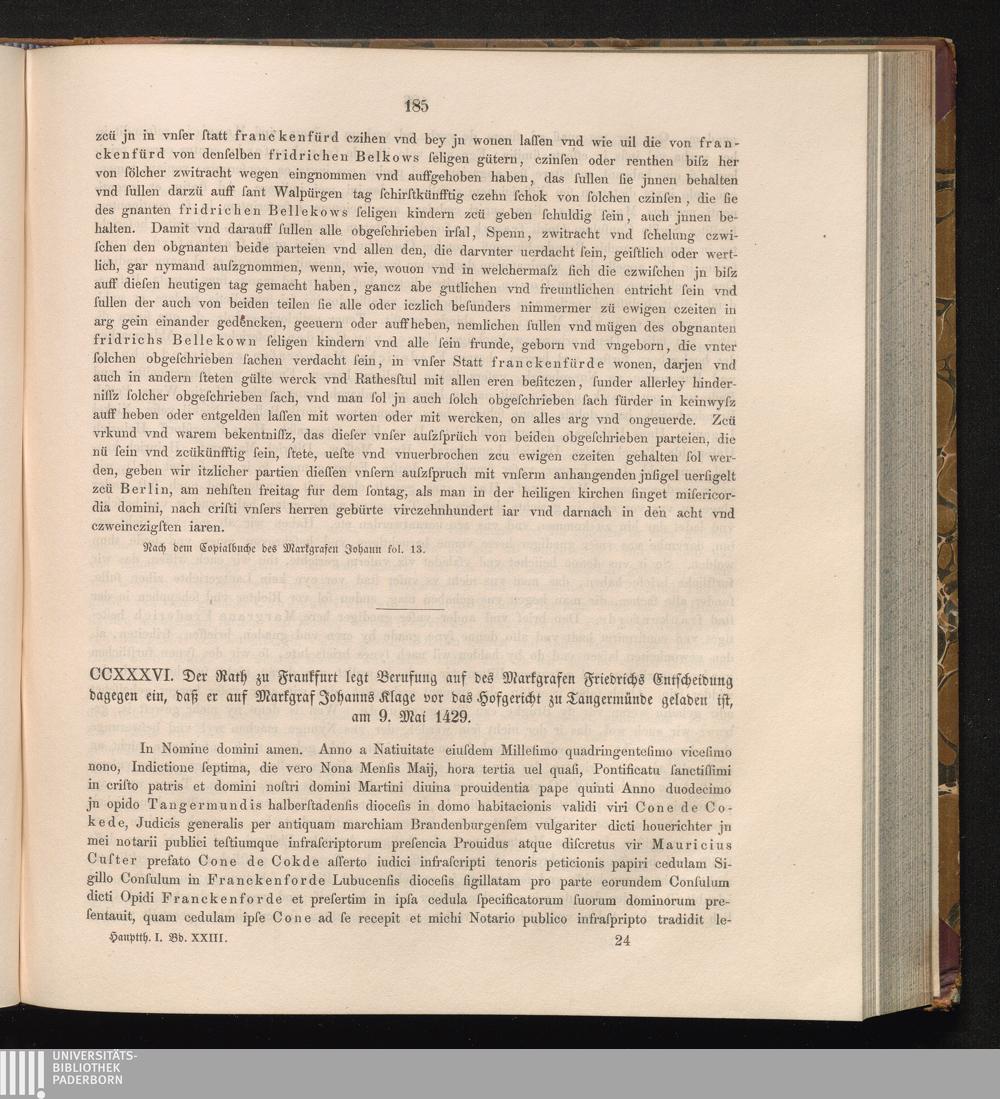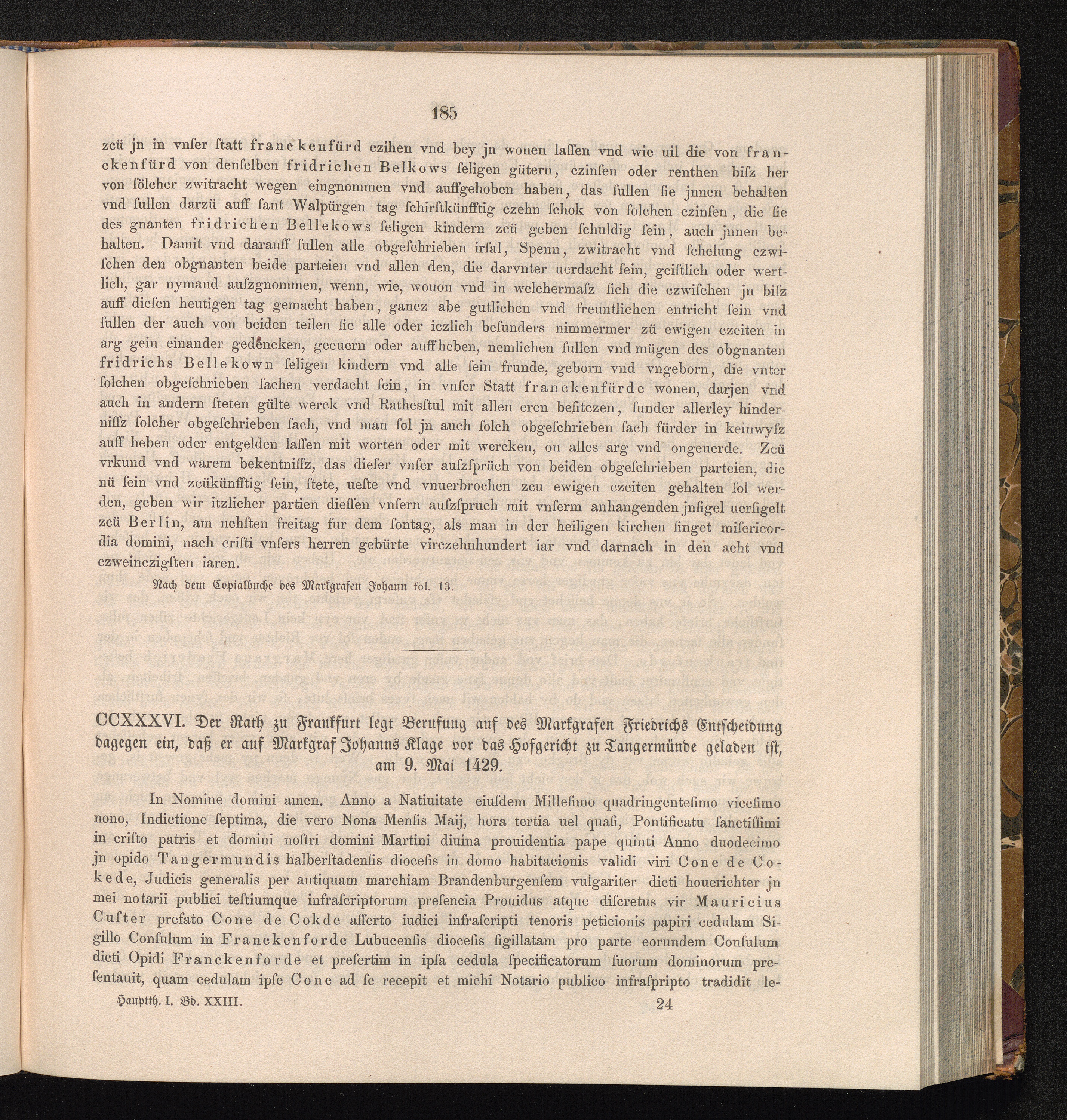 CCXXXVI. Der Rath zu Frankfurt legt Berufung auf des Markgrafen Friedrichs Entscheidung[...]
