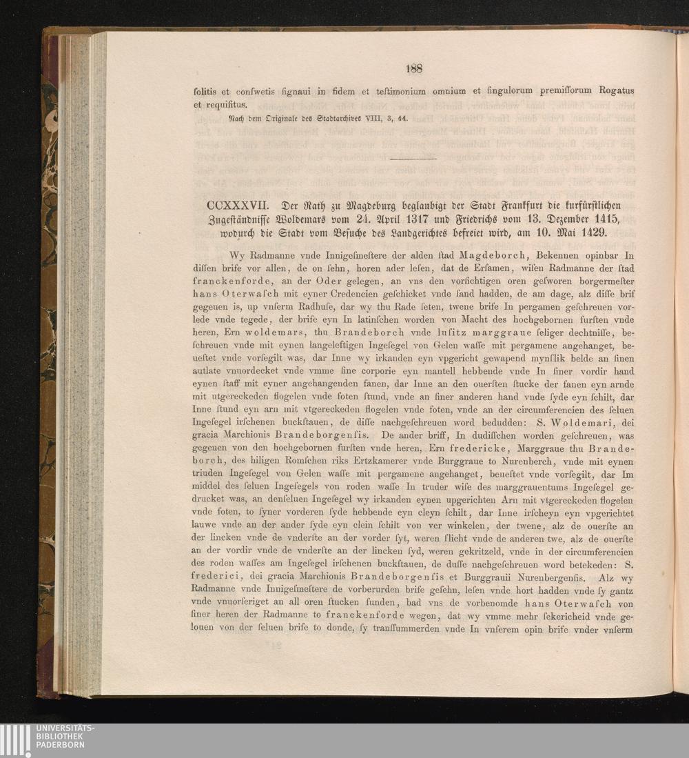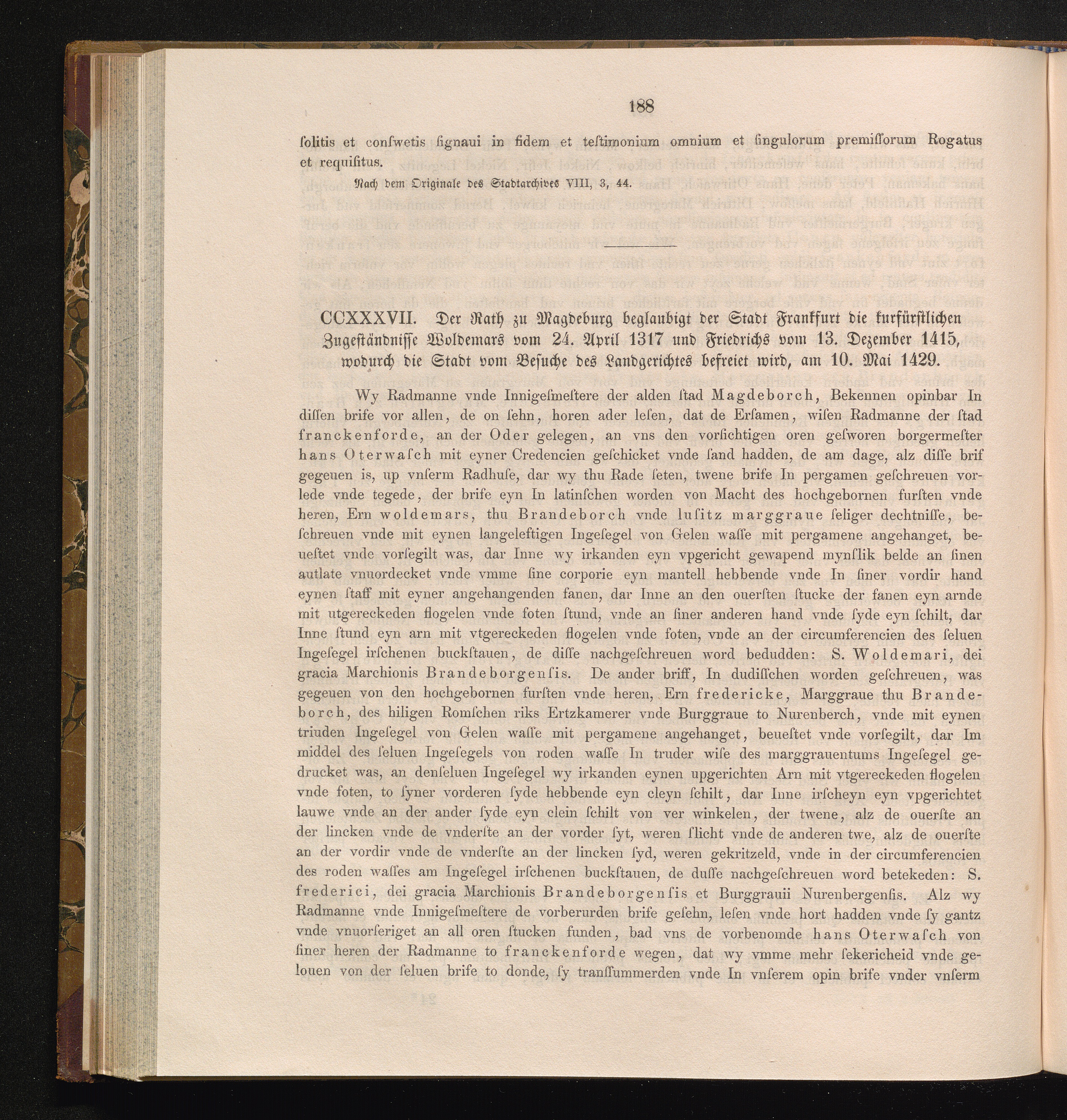CCXXXVII. Der Rath zu Magdeburg beglaubigt der Stadt Frankfurt die kurfürstlichen[...]