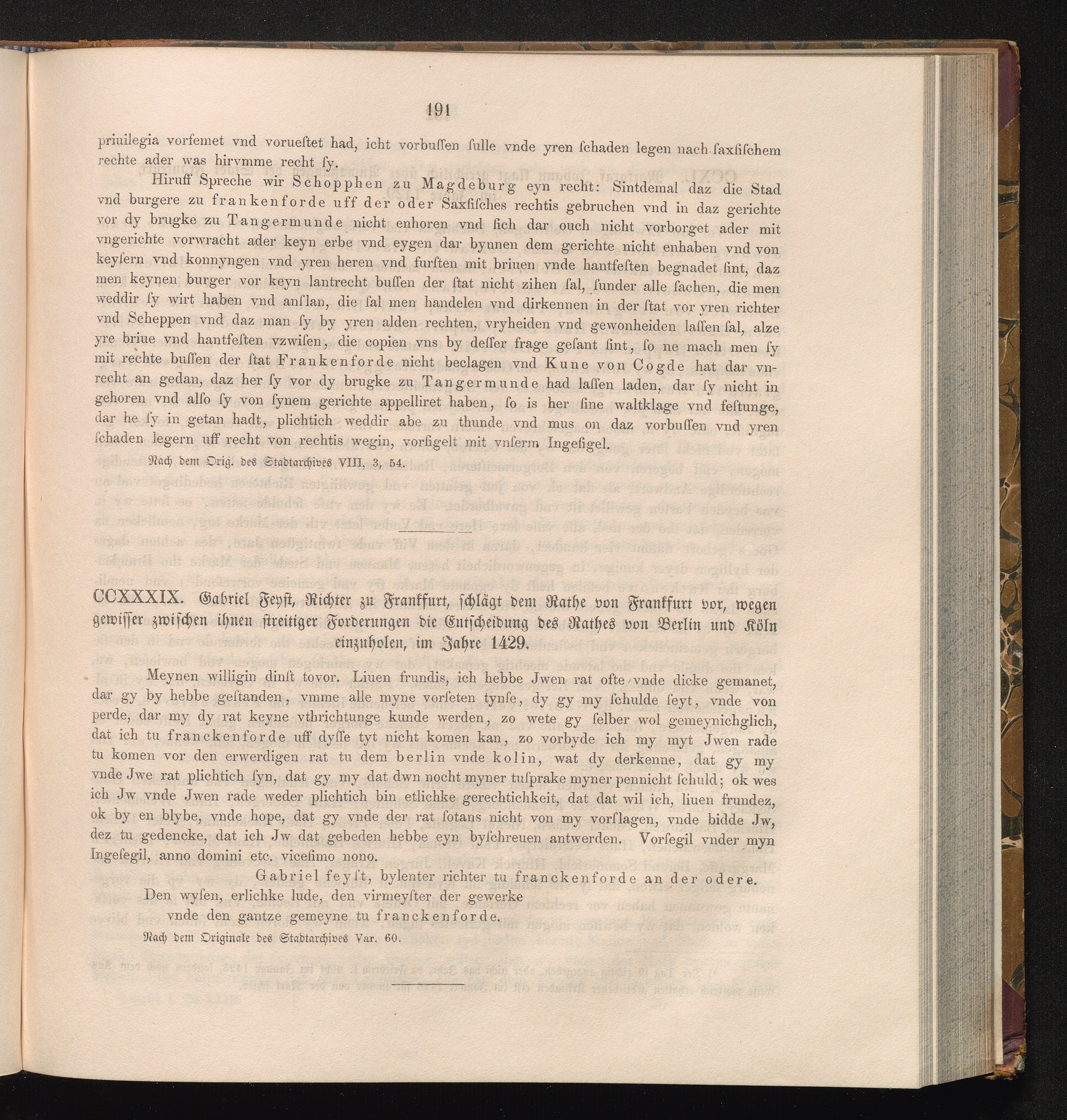 CCXXXIX. Gabriel Feyst, Richter zu Frankfurt, schlägt dem Rathe von Frankfurt vor,[...]
