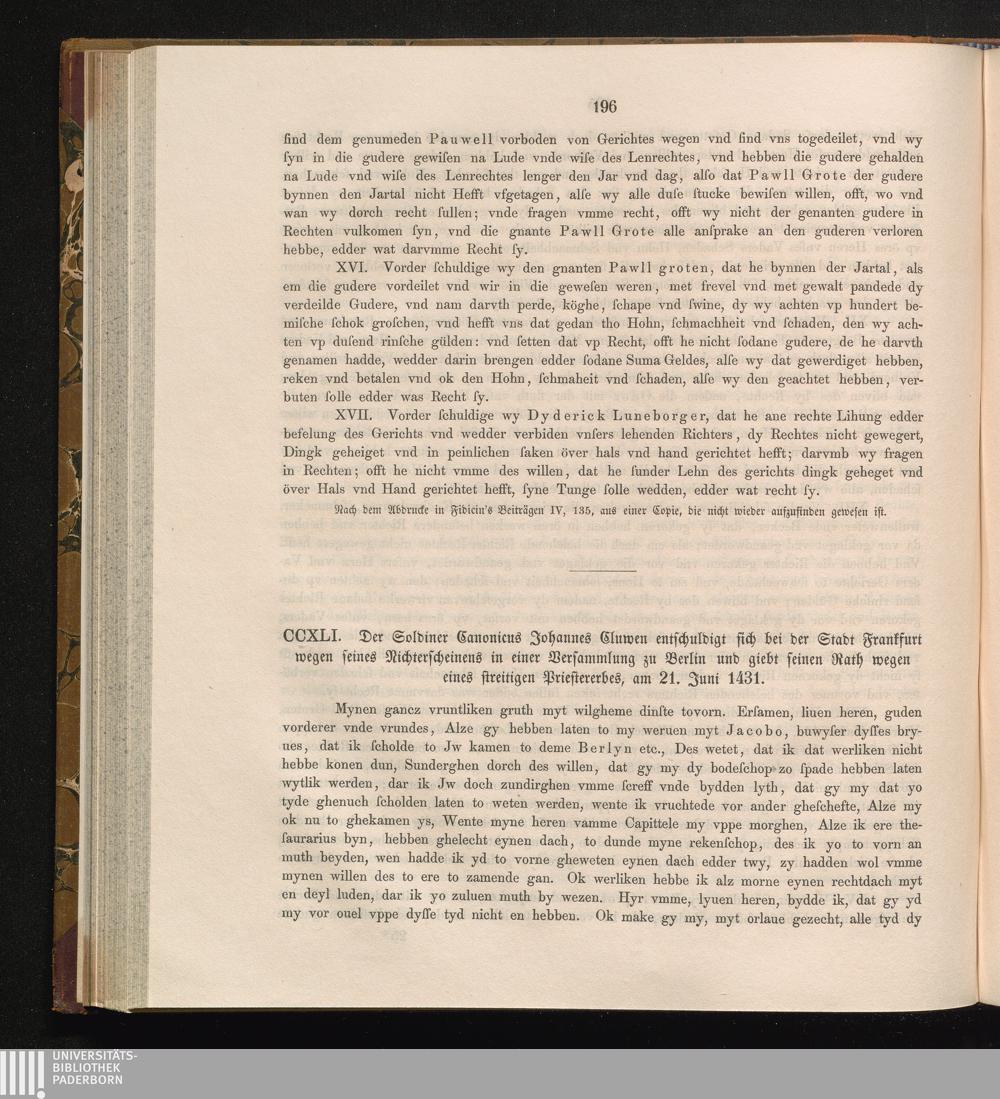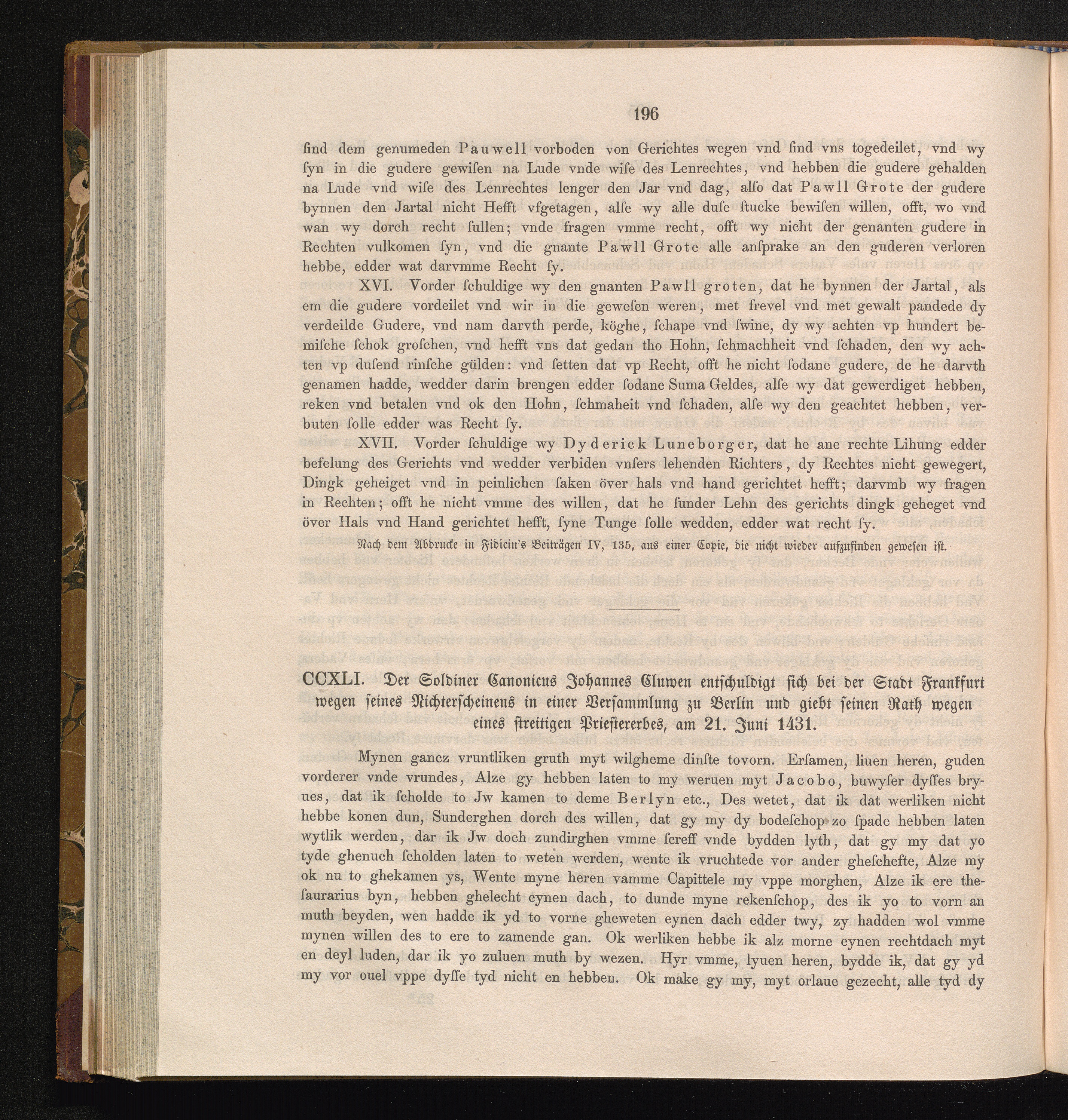 CCXLI. Der Soldiner Canonicus Johannes Cluwen entschuldigt sich bei der Stadt Frankfurt[...]