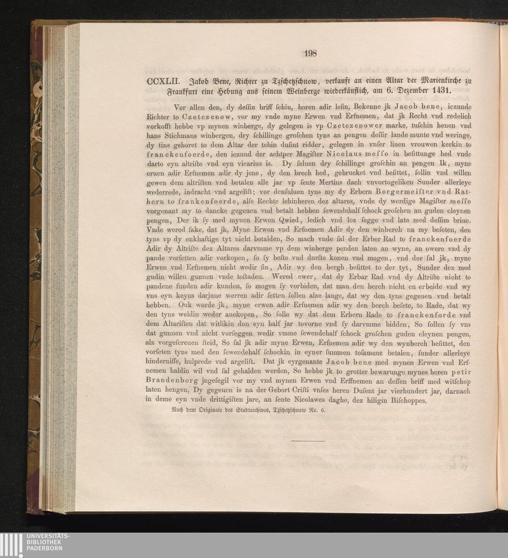 CCXLII. Jacob Bene, Richter zu Tzschetzschnow, verkauft an einen Altar der Marienkirche[...]