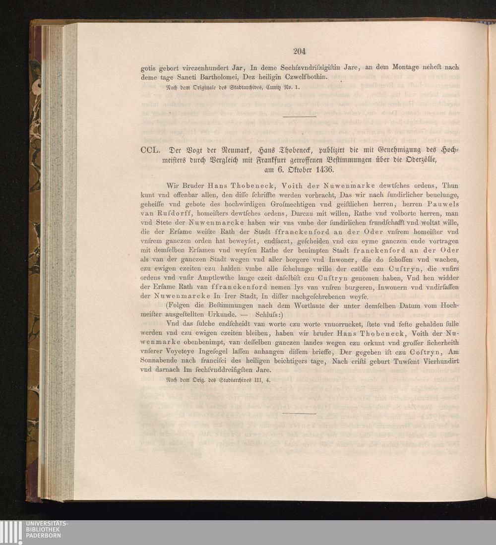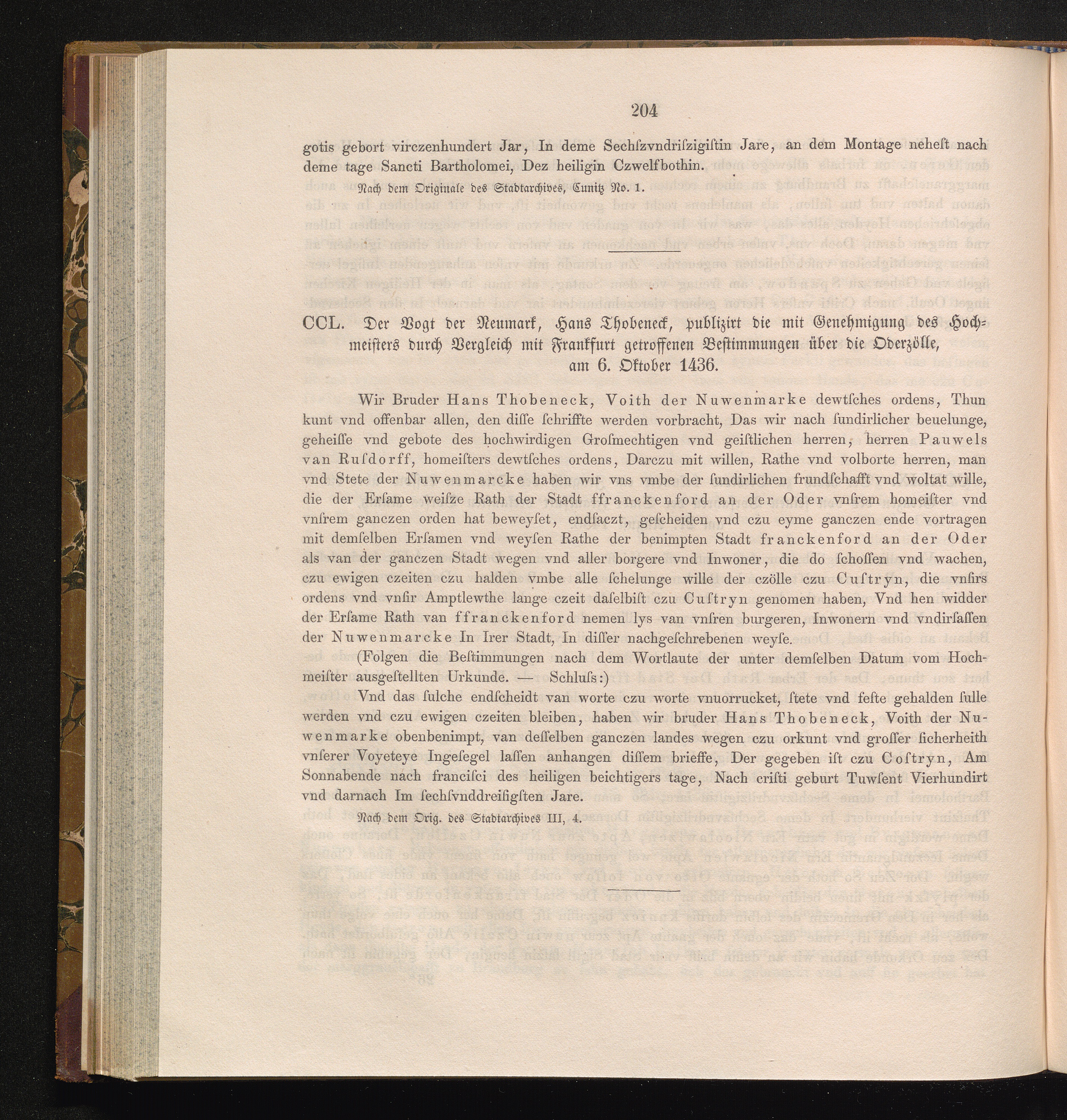 CCL. Der Vogt der Neumark, Hans Thobeneck, publizirt die mit Genehmigung des Hochmeisters[...]
