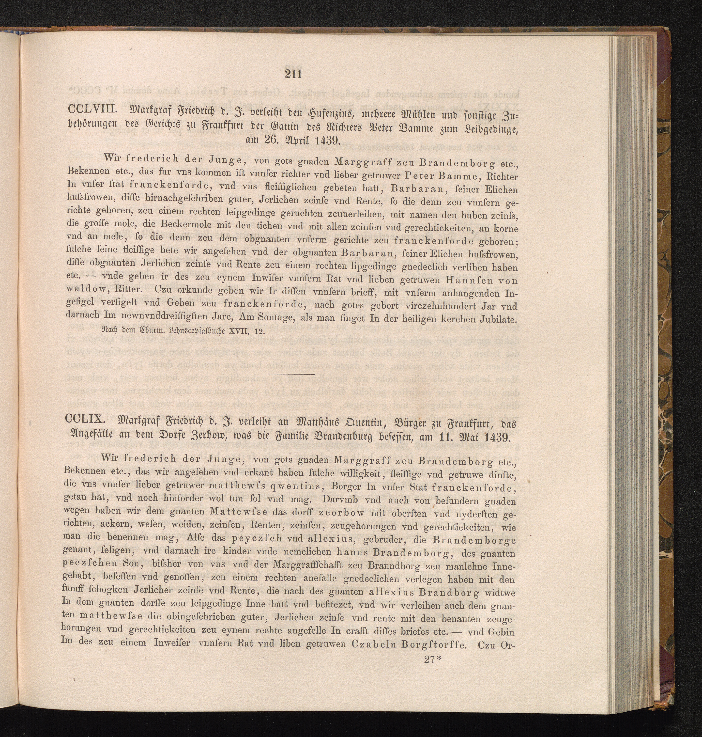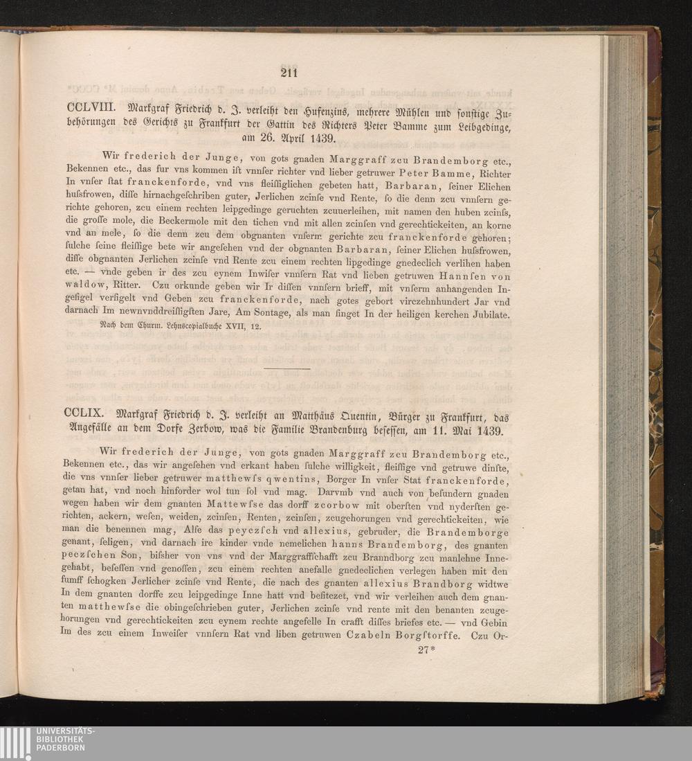 CCLIX. Markgraf Friedrich d. J. verleiht an Matthäus Quentin , Bürger zu Frankfurt,[...]