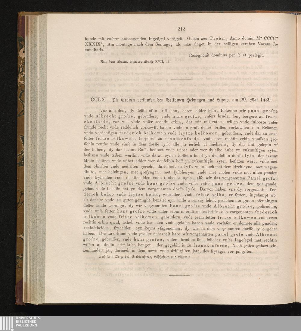 CCLX. Die Großen verkaufen den Belkowen Hebungen aus Lissow, am 29. Mai 1439.