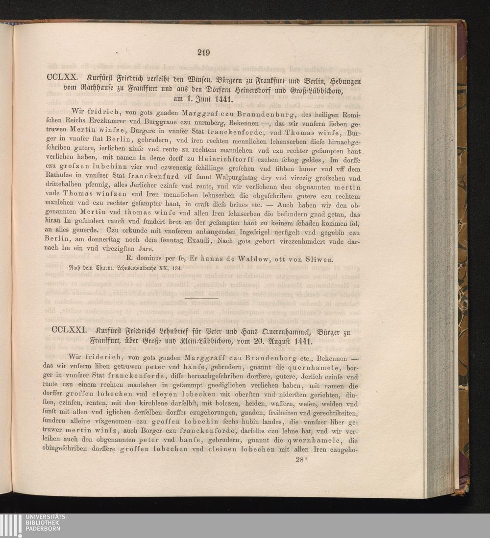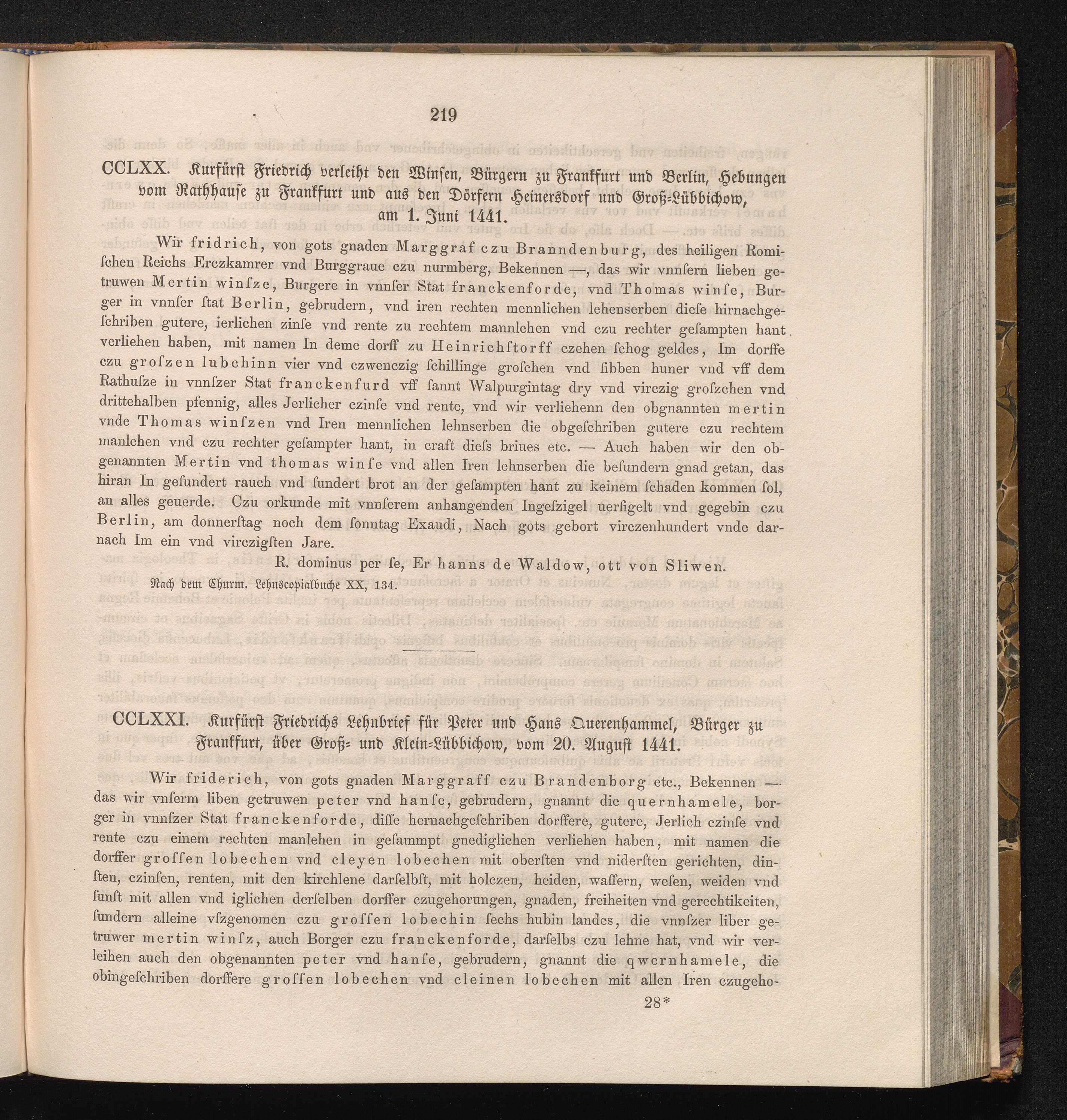 CCLXXI. Kurfürst Friedrichs Lehnbrief für Peter und Hans Querenhammel, Bürger zu[...]