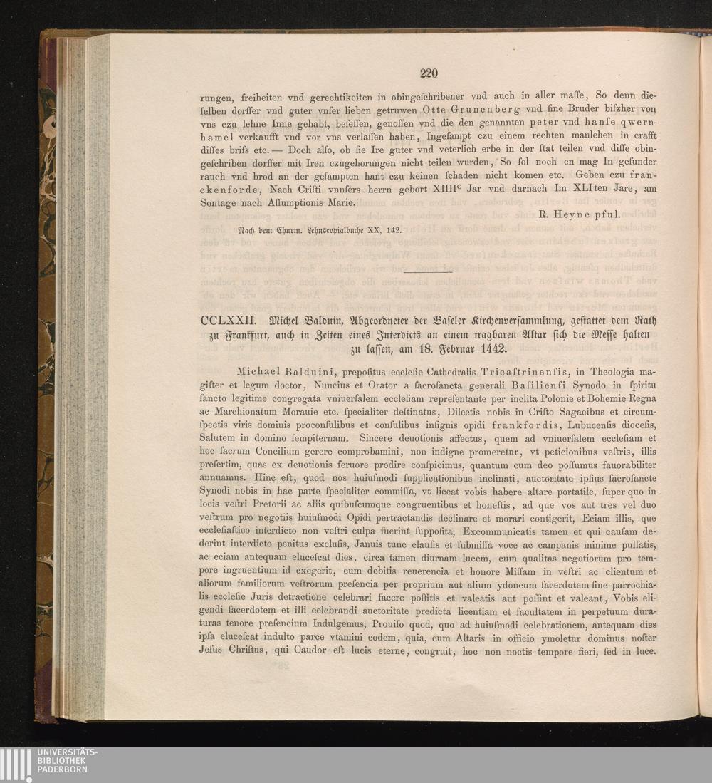 CCLXXII. Michel Balduin, Abgeordneter der Baseler Kirchenversammlung, gestattet dem[...]