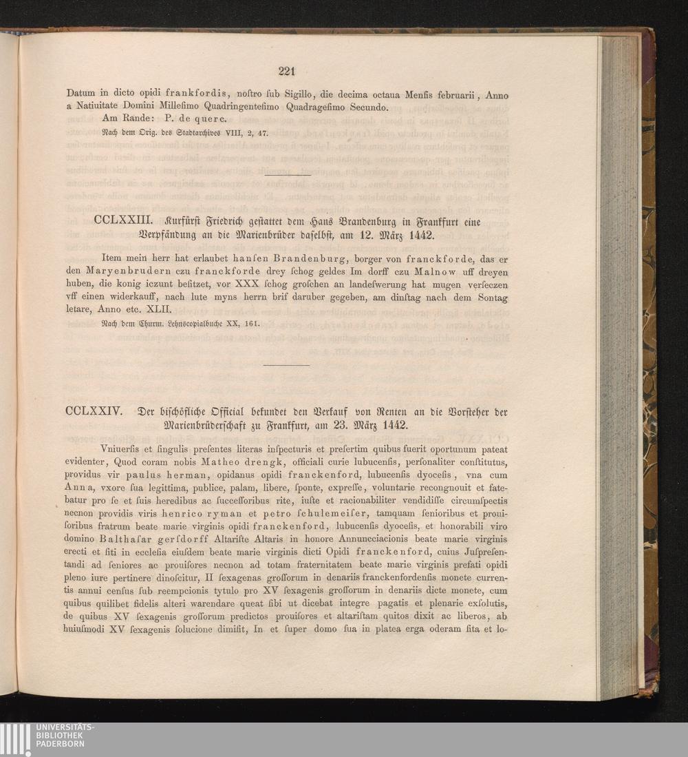 CCLXXIV. Der bischöfliche Official bekundet den Verkauf von Renten an die Vorsteher[...]