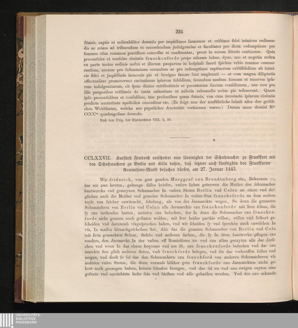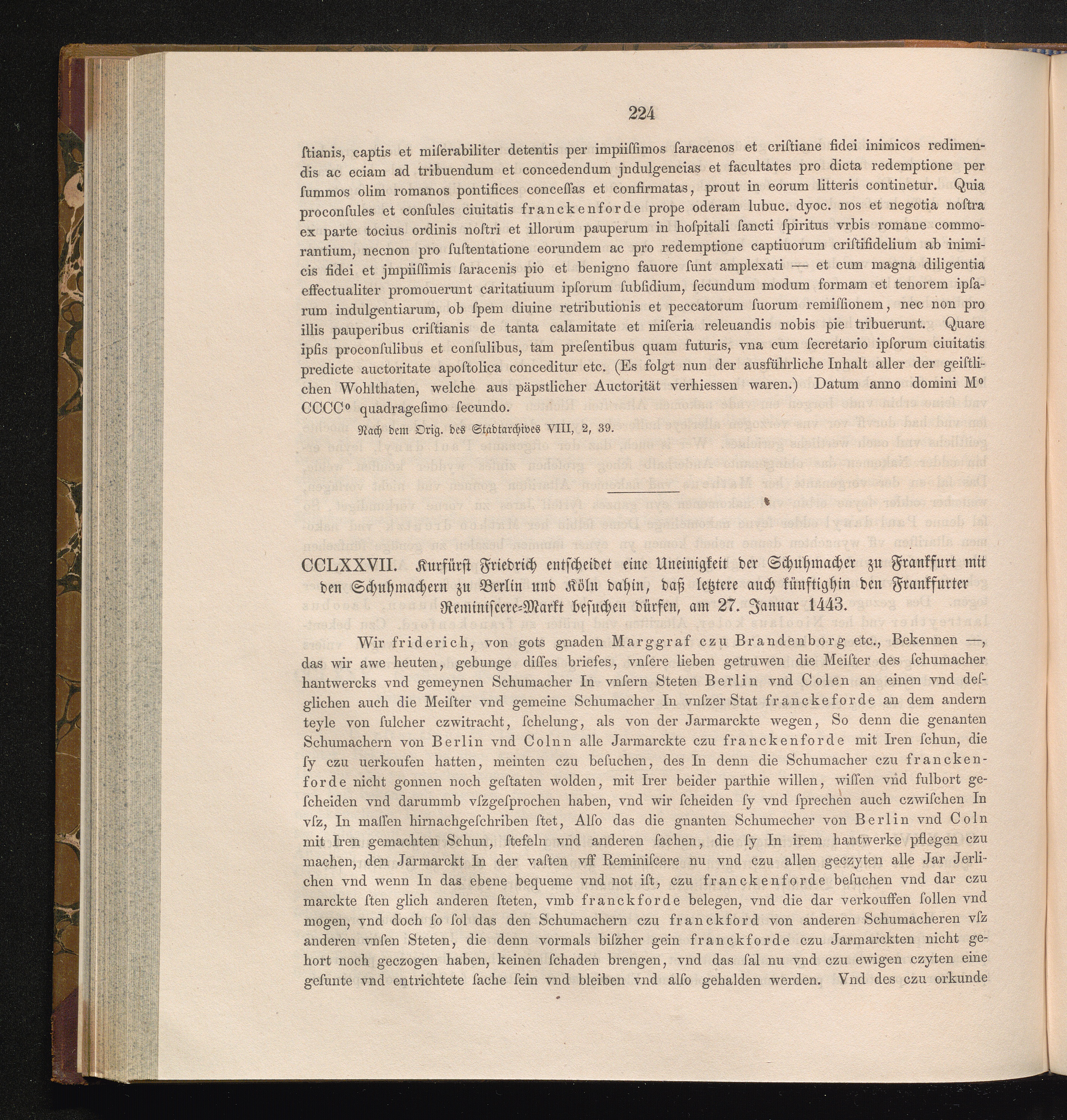 CCLXXVII. Kurfürst Friedrich entscheidet eine Uneinigkeit der Schuhmacher zu Frankfurt[...]