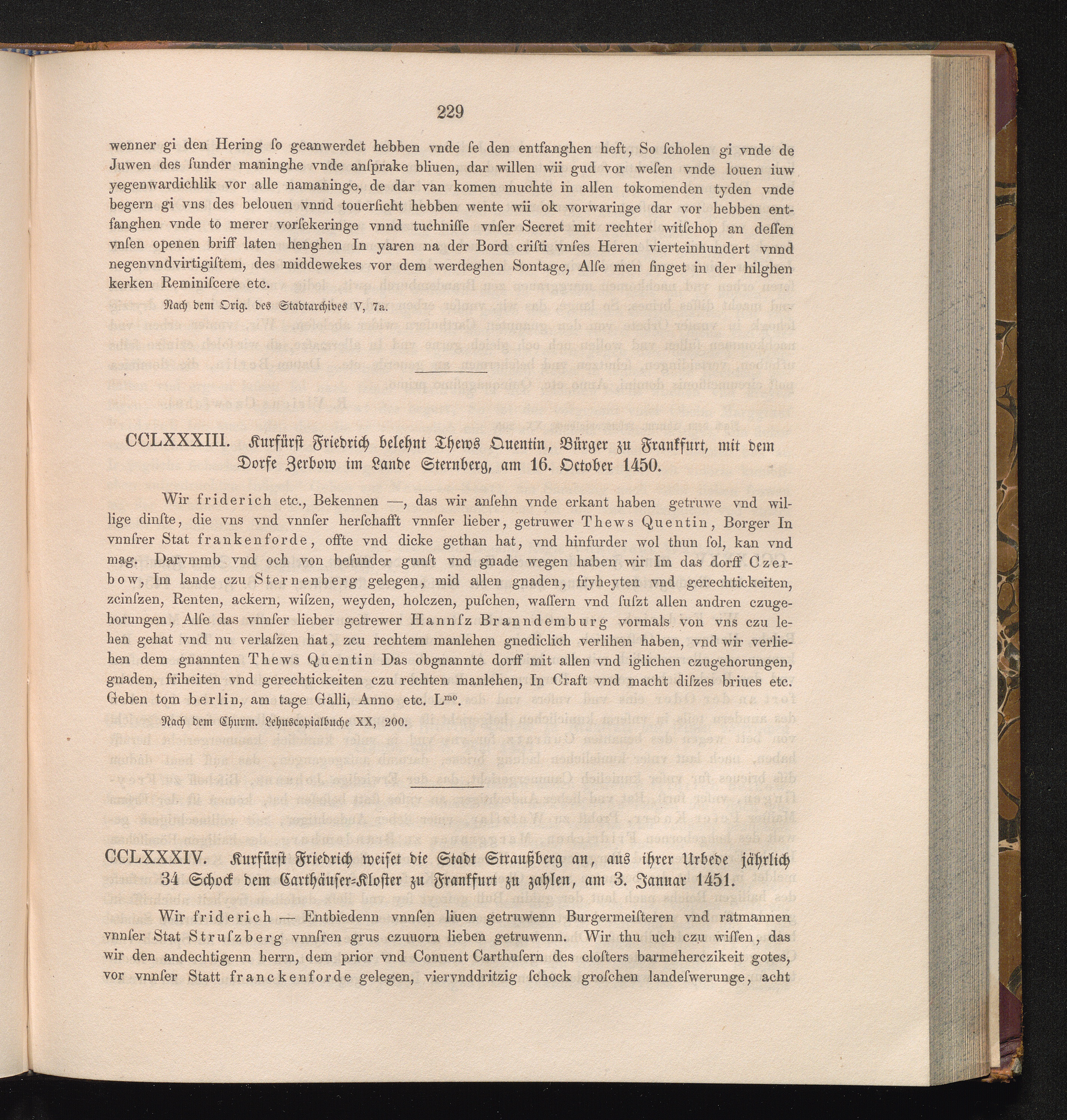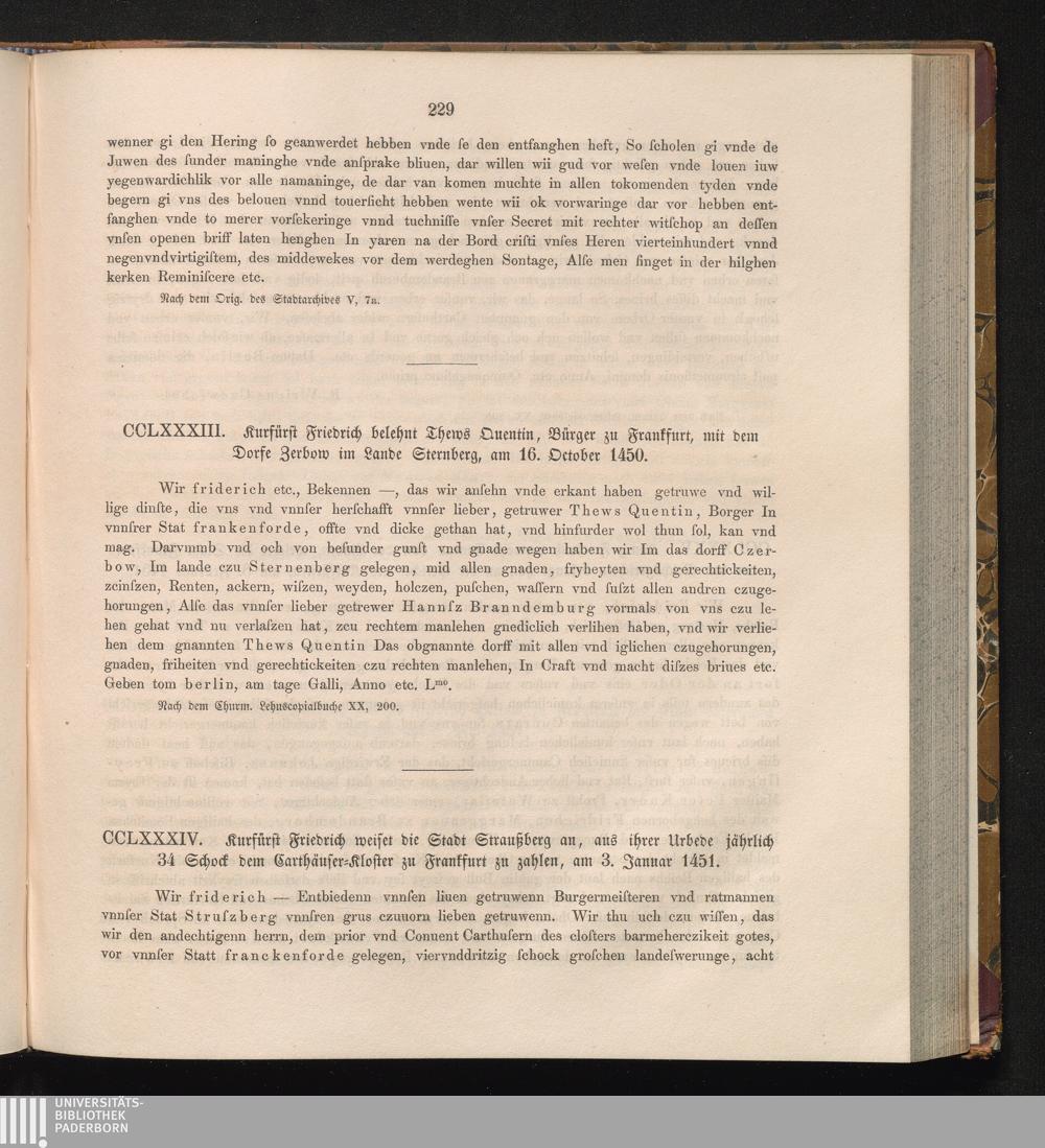 CCLXXXXIV. Kurfürst Friedrich weiset die Stadt Straußberg an, aus ihrer Urbede jährlich[...]