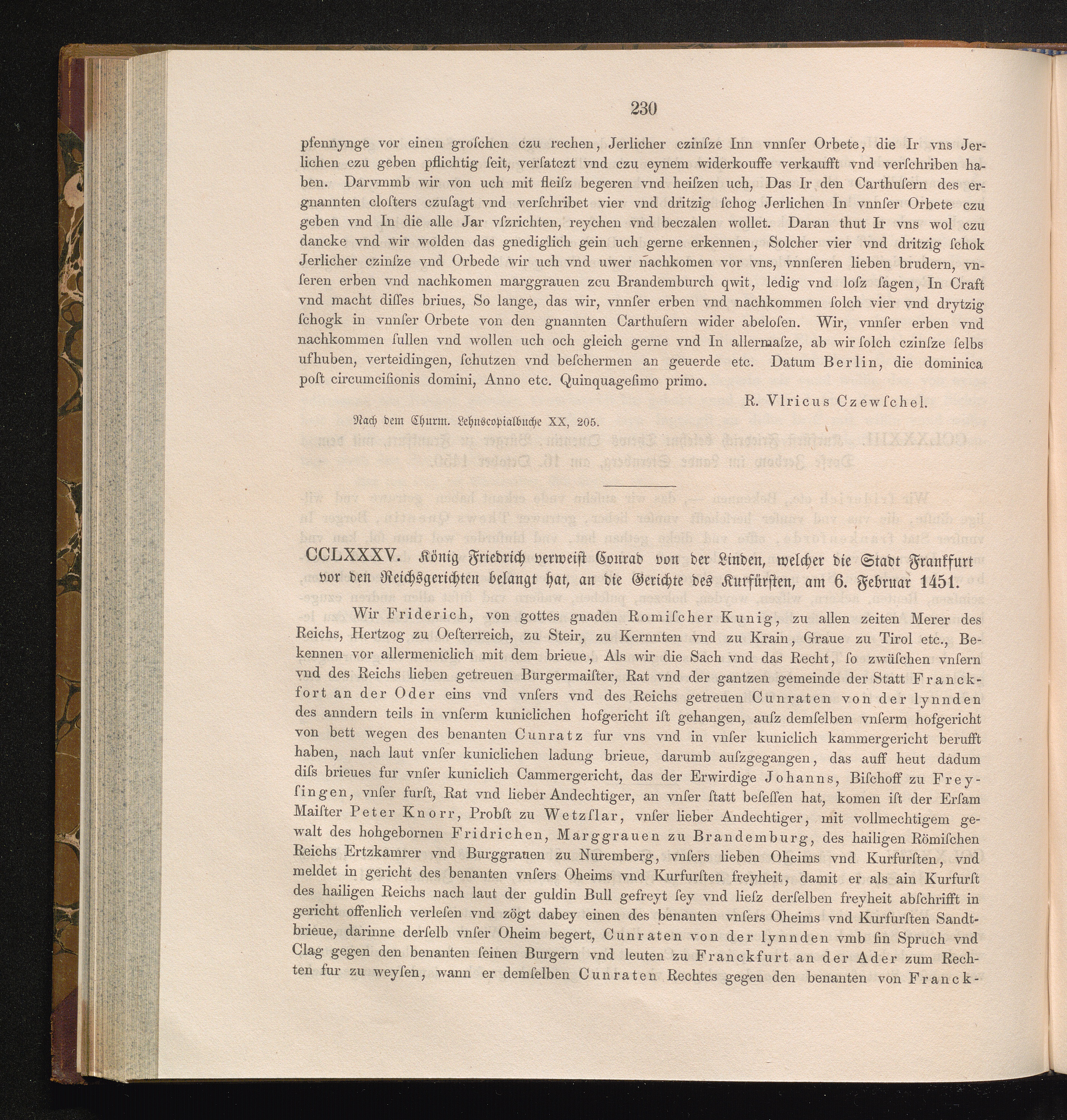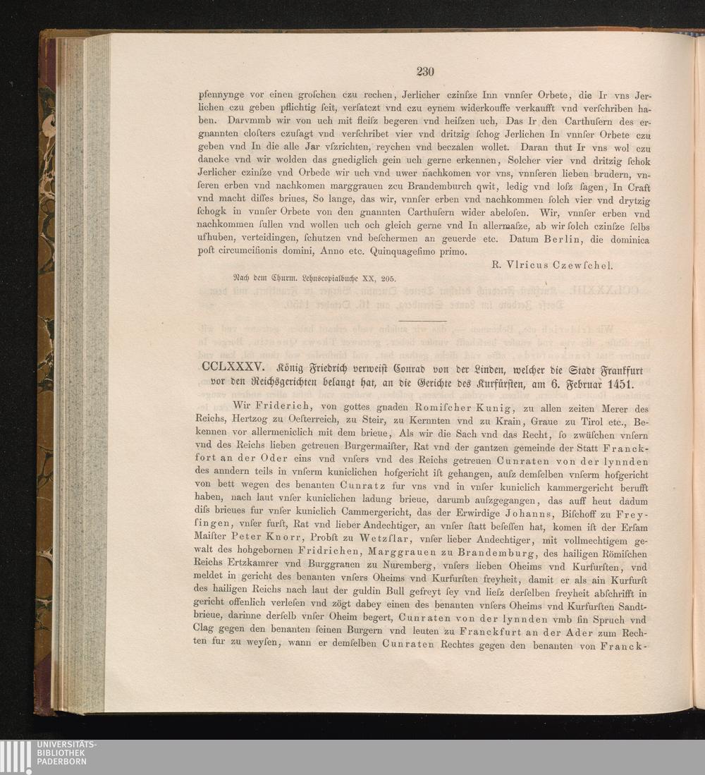 CCLXXXV. König Friedrich verweist Conrad von der Linden, welcher die Stadt Frankfurt[...]