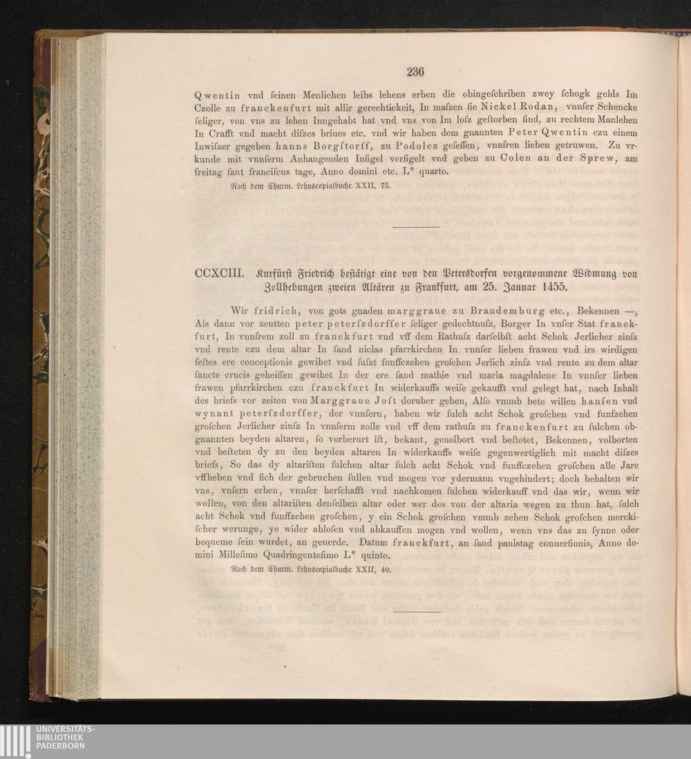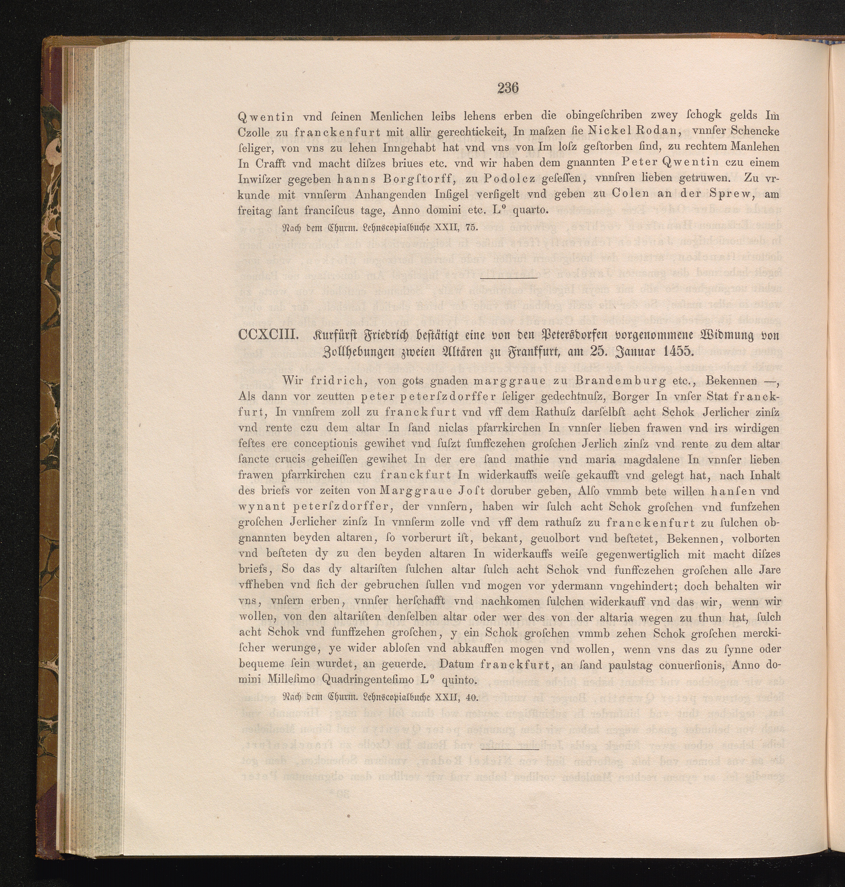 CCXCIII. Kurfürst Friedrich bestätigt eine von den Petersdorfern vorgenommene Widmung[...]