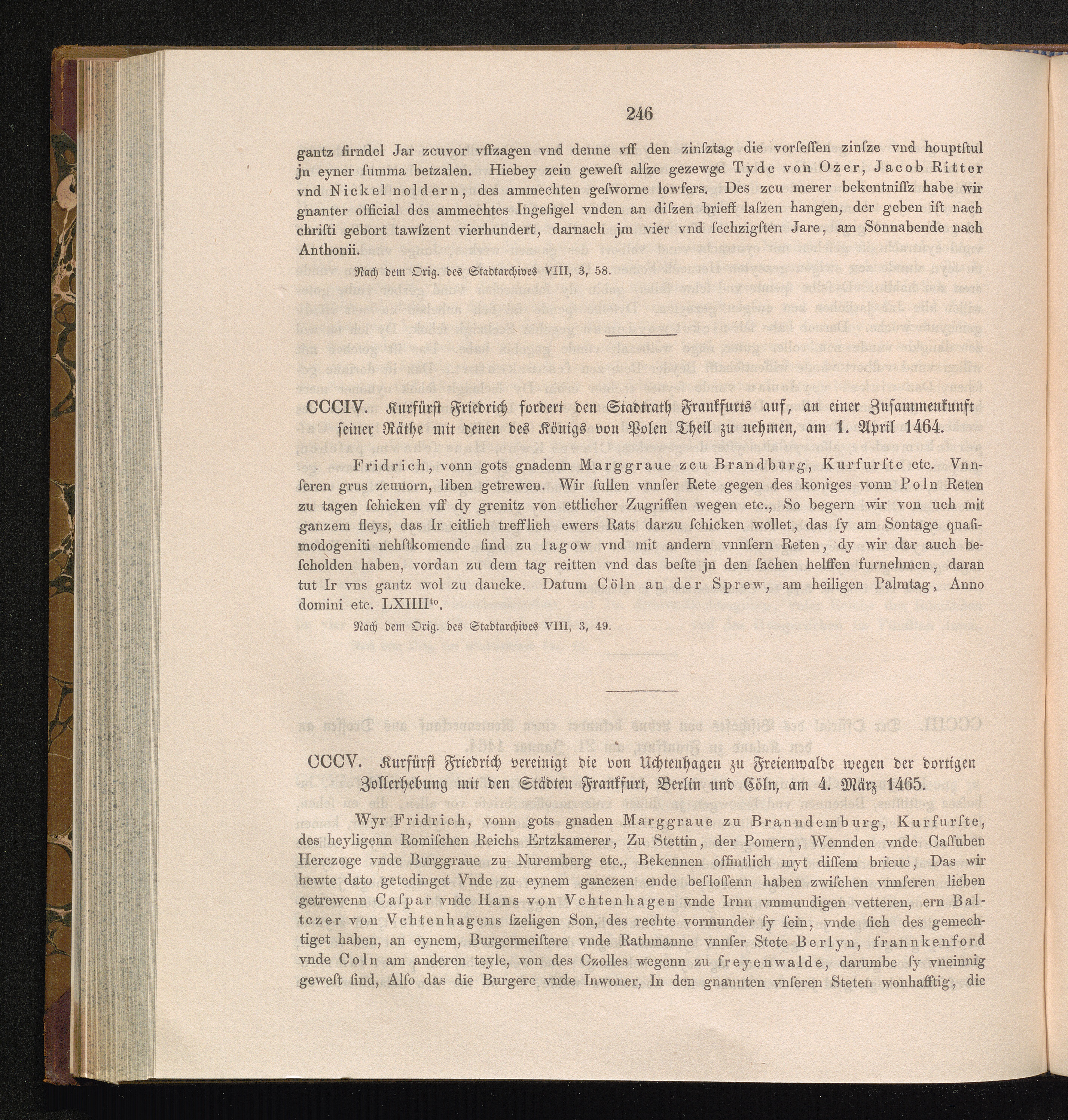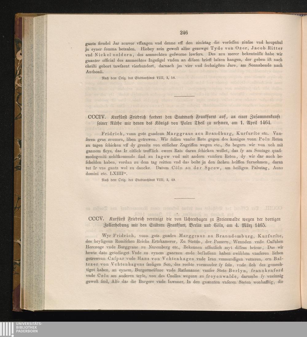 CCCV. Kurfürst Friedrich vereinigt die von Uchtenhagen zu Freienwalde wegen der dortigen[...]