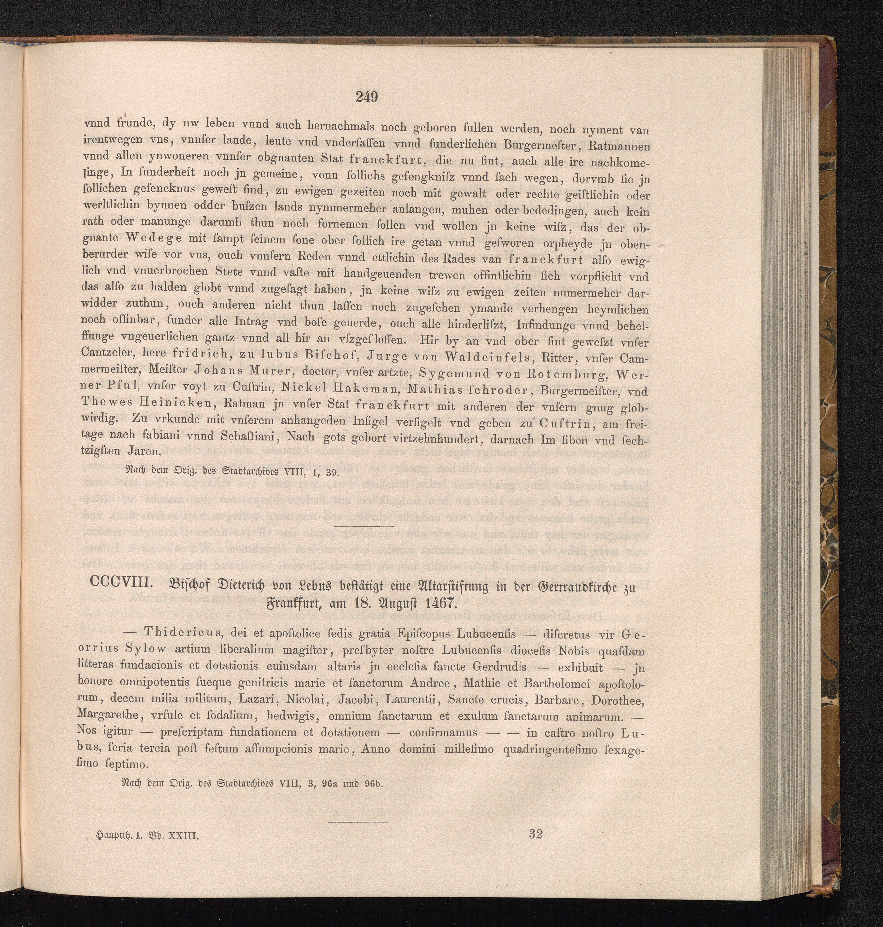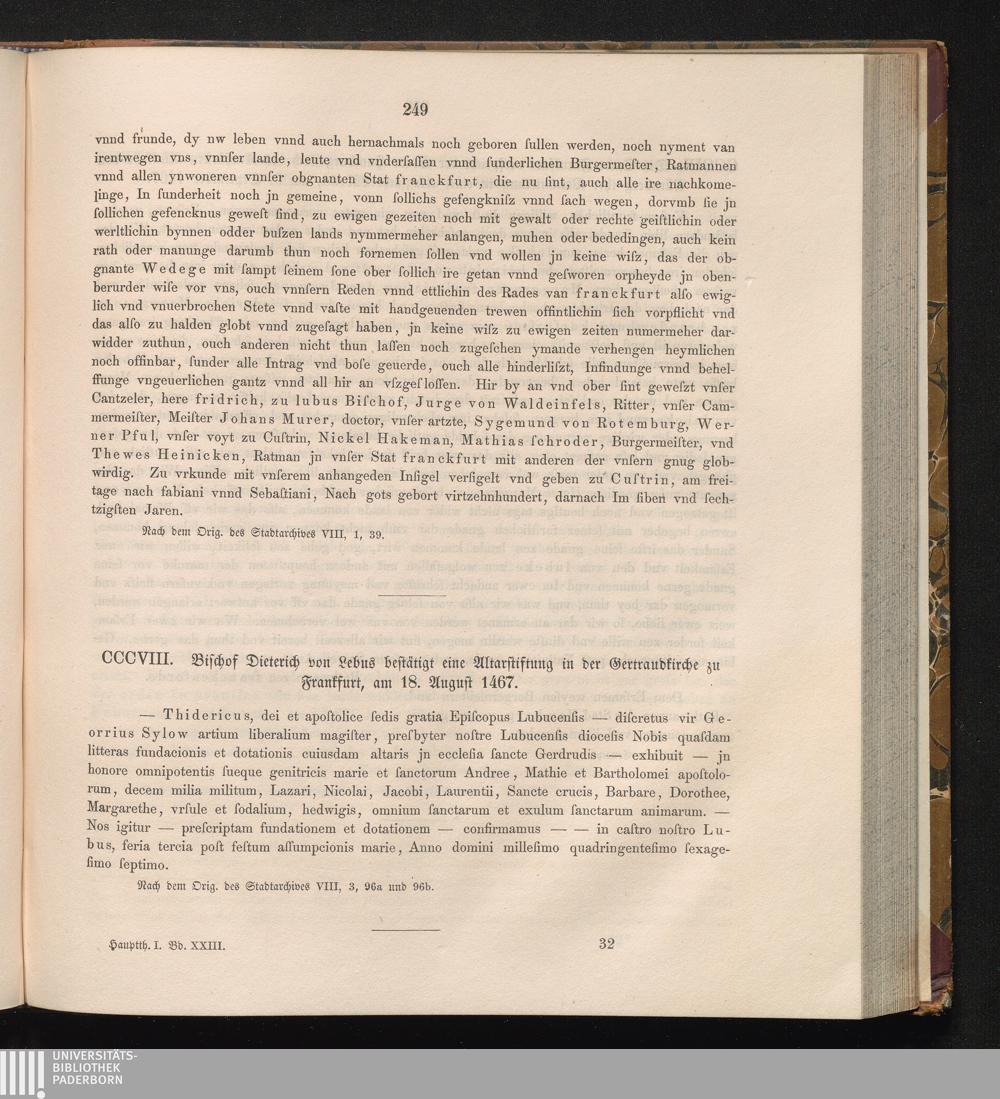 CCCVIII. Bischof Dieterich von Lebus bestätigt eine Altarstiftung in der Gertraudkirche[...]