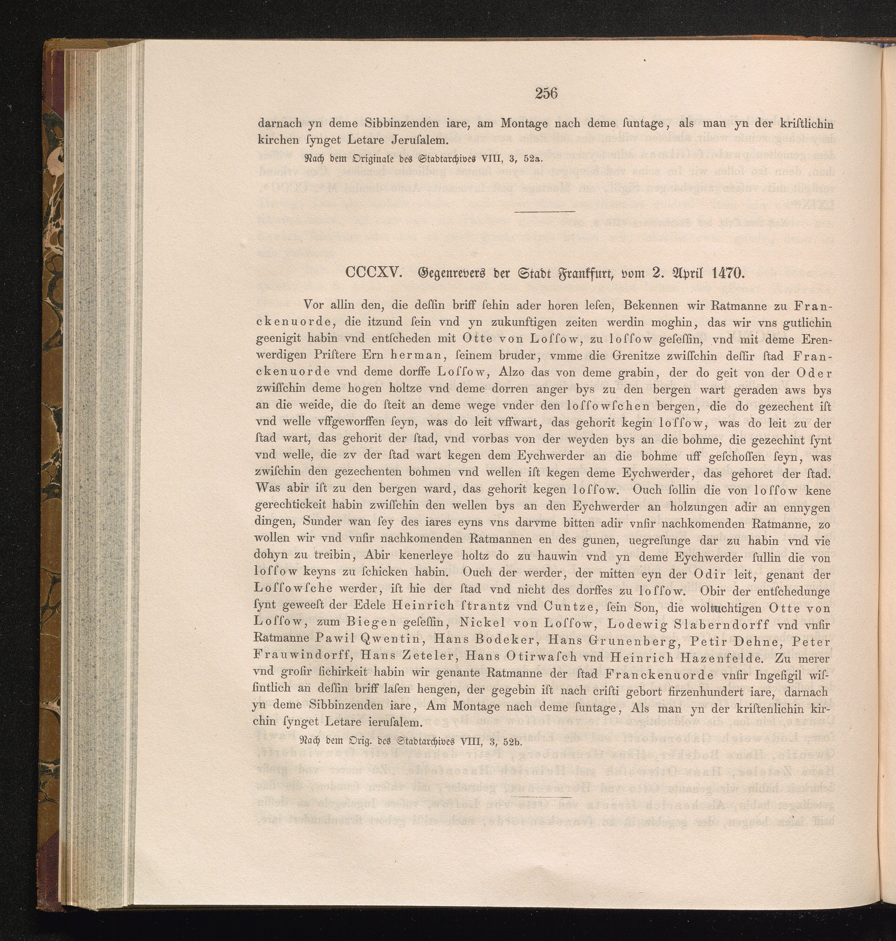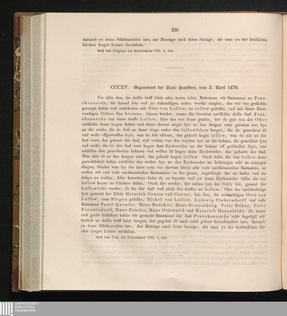 CCCXV. Gegenrevers der Stadt Frankfurt, vom 2. April 1470.