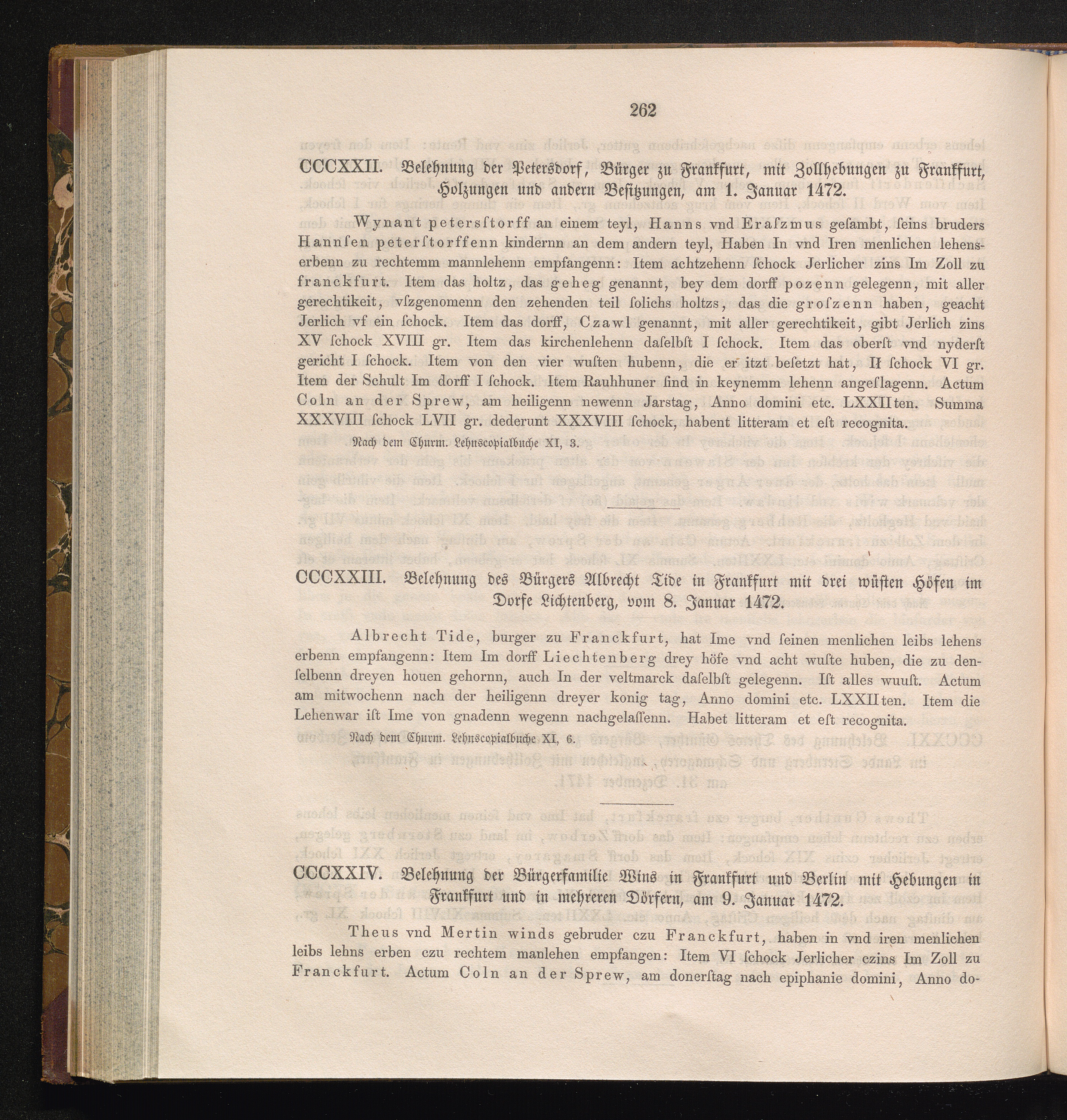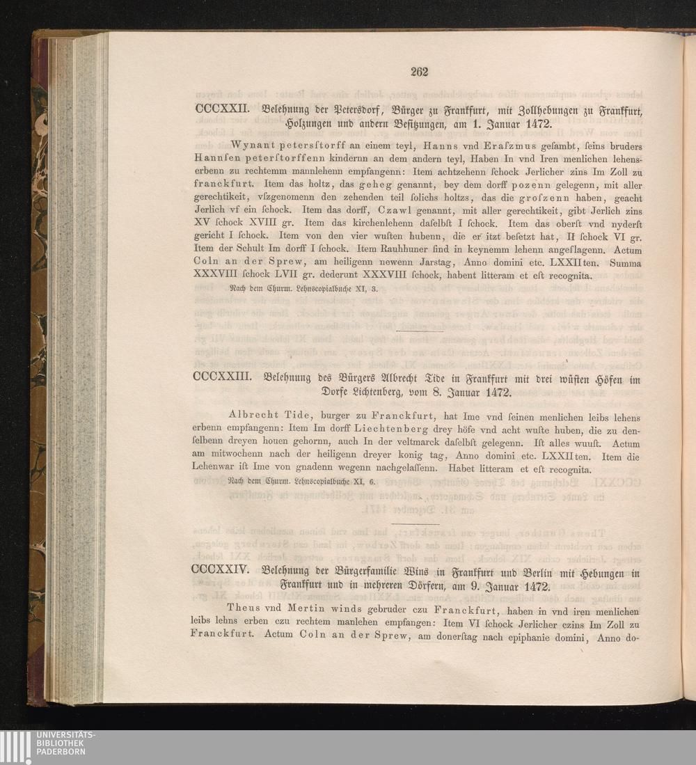 CCCXXIV. Belehnung der Bürgerfamilien Wins in Frankfurt und Berlin mit Hebungen in[...]
