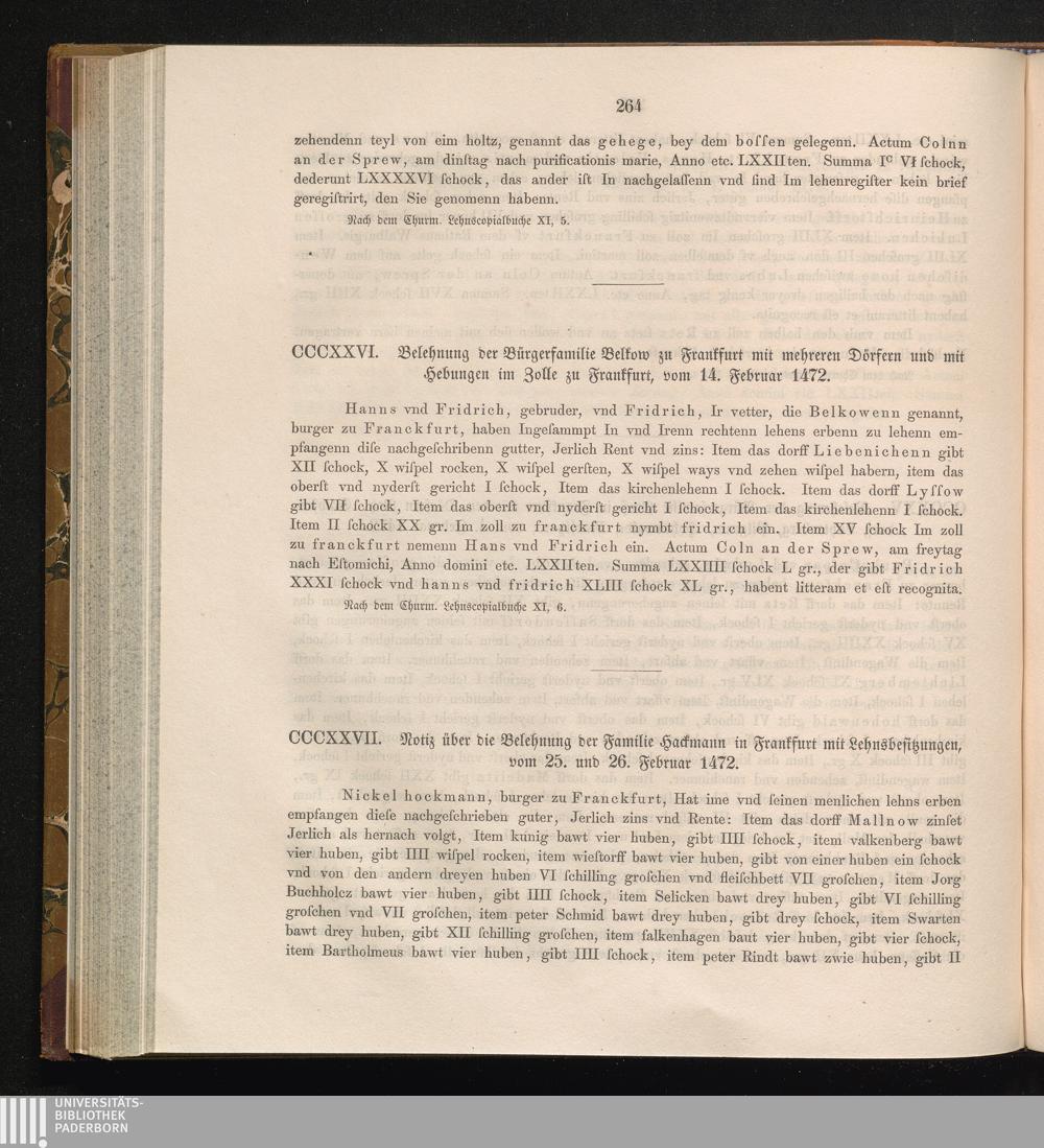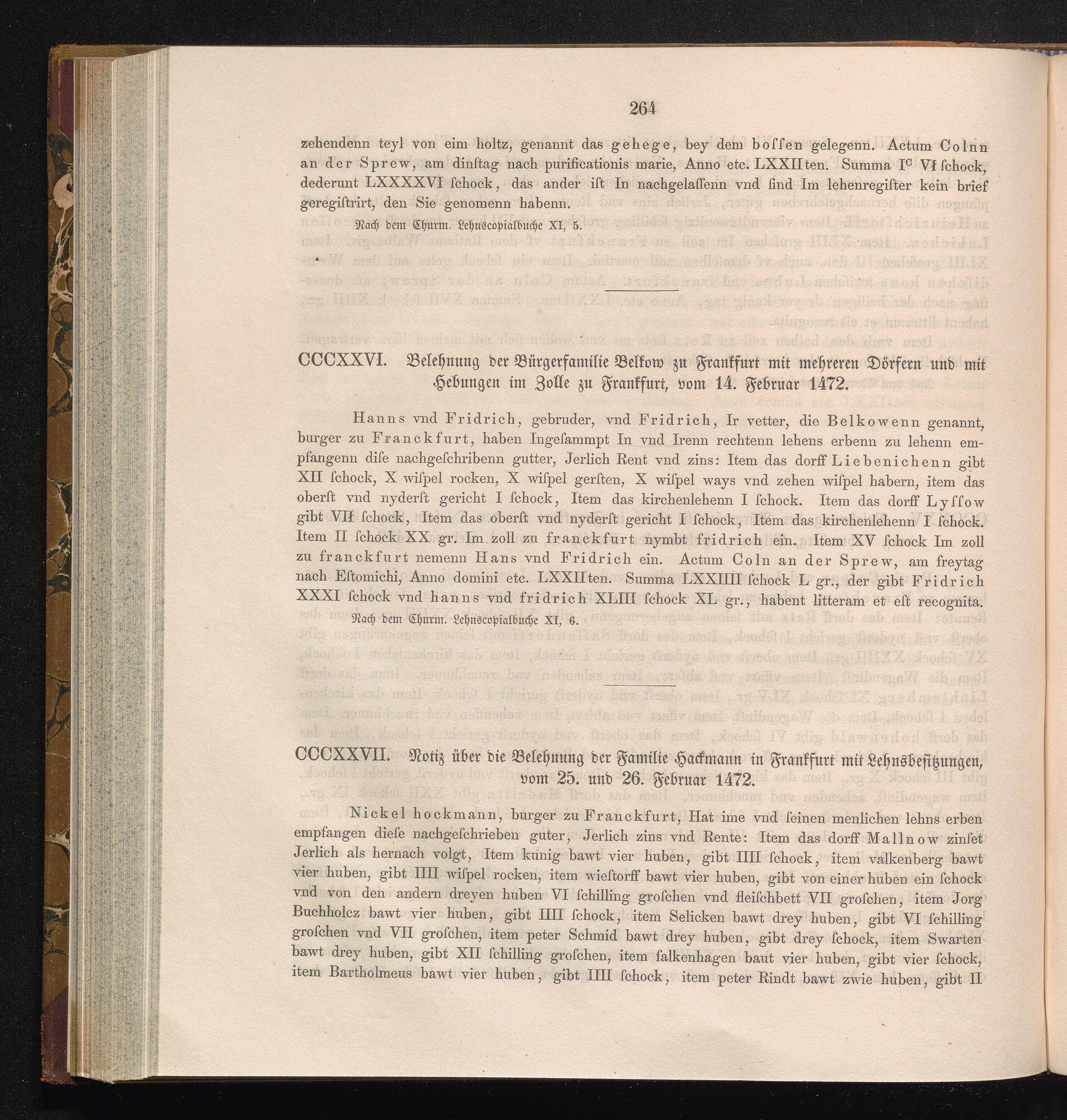 CCCXXVII. Notiz über die Belehnung der Familie Hackmann in Frankfurt mit Lehnsbesitzungen,[...]