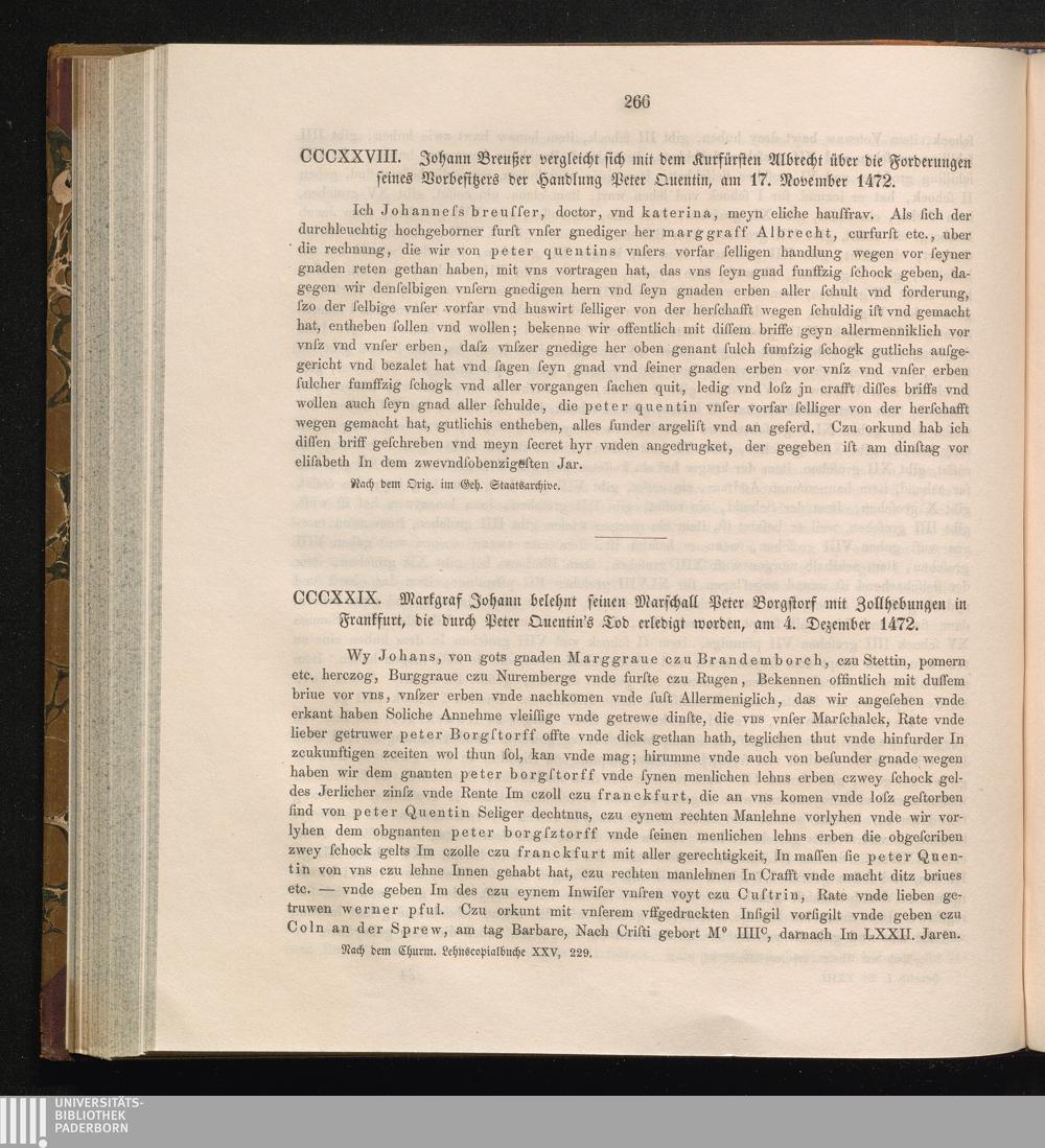 CCCXXIX. Markgraf Johann belehnt seinen Marschall Peter Borgstorf mit Zollhebungen[...]