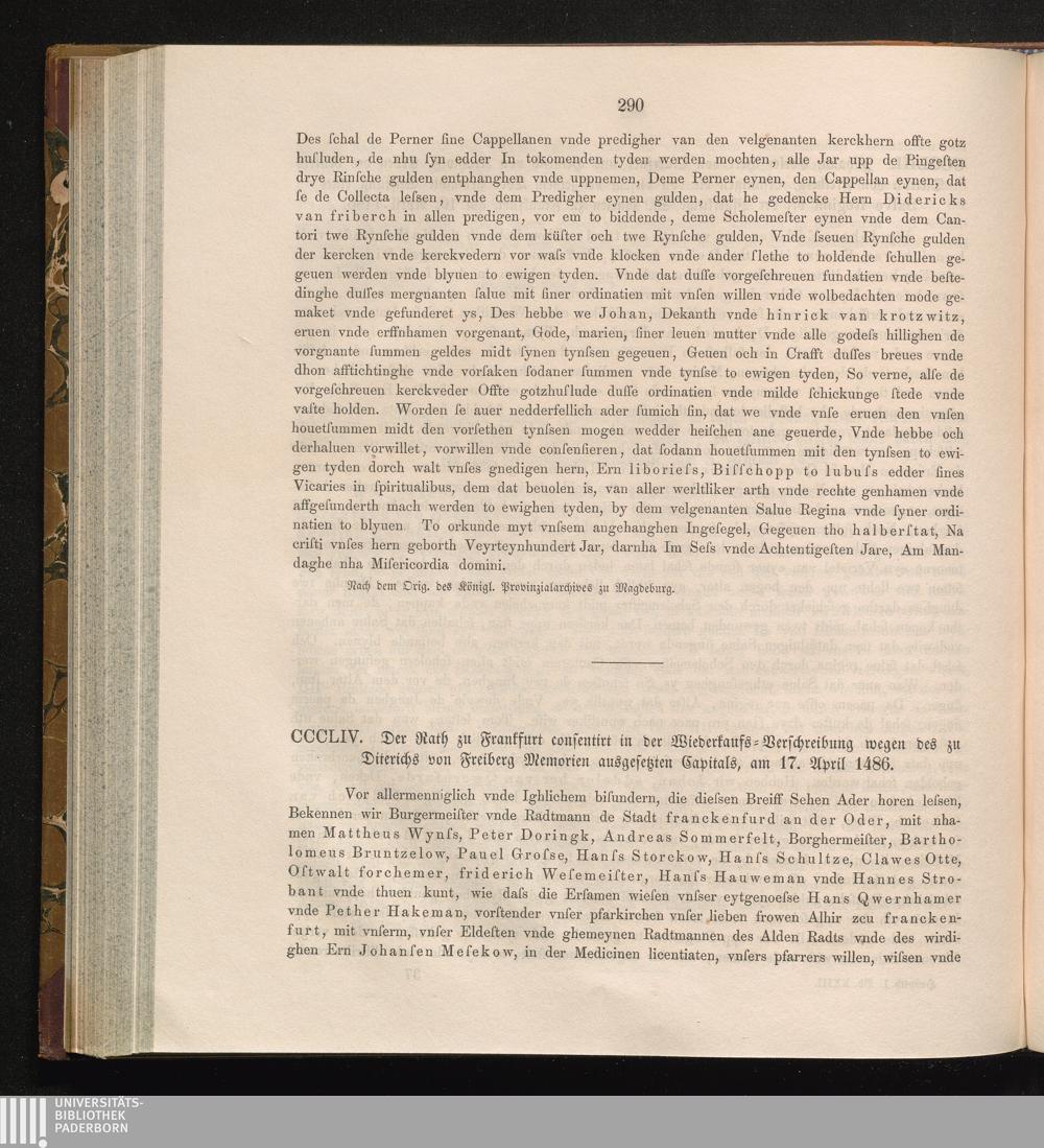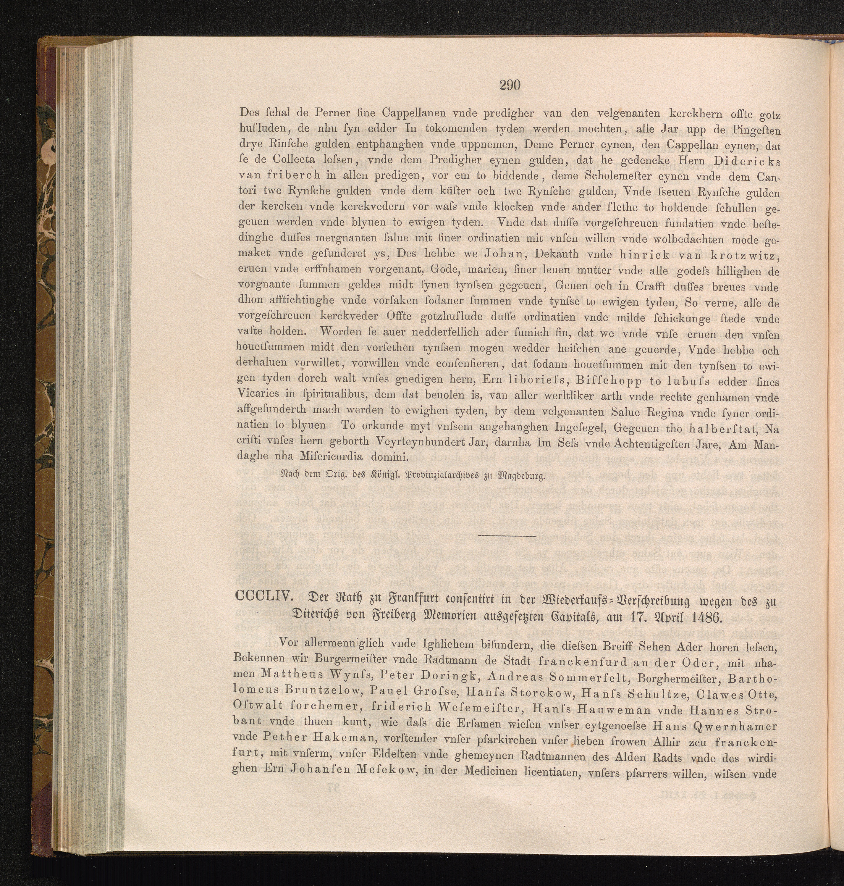 CCCLIV. Der Rath zu Frankfurt consentirt in der Wiederkaufs-Verschreibung wegen des[...]