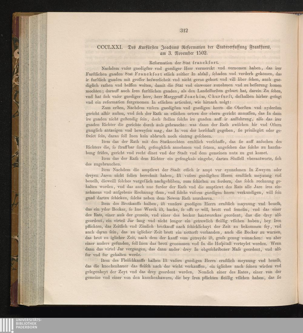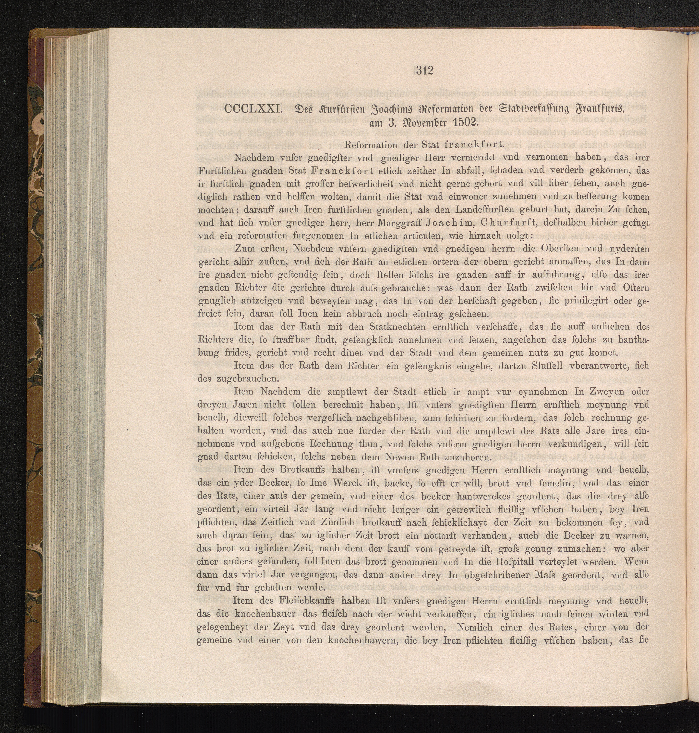 CCCLXXI. Des Kurfürsten Joachims Reformation der Stadtverfassung Frankfurts, am 3.[...]