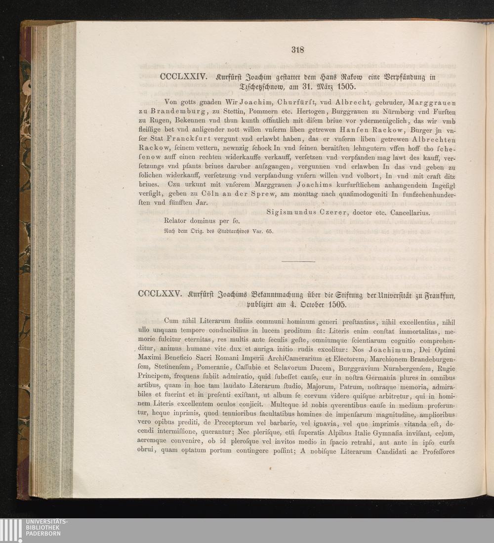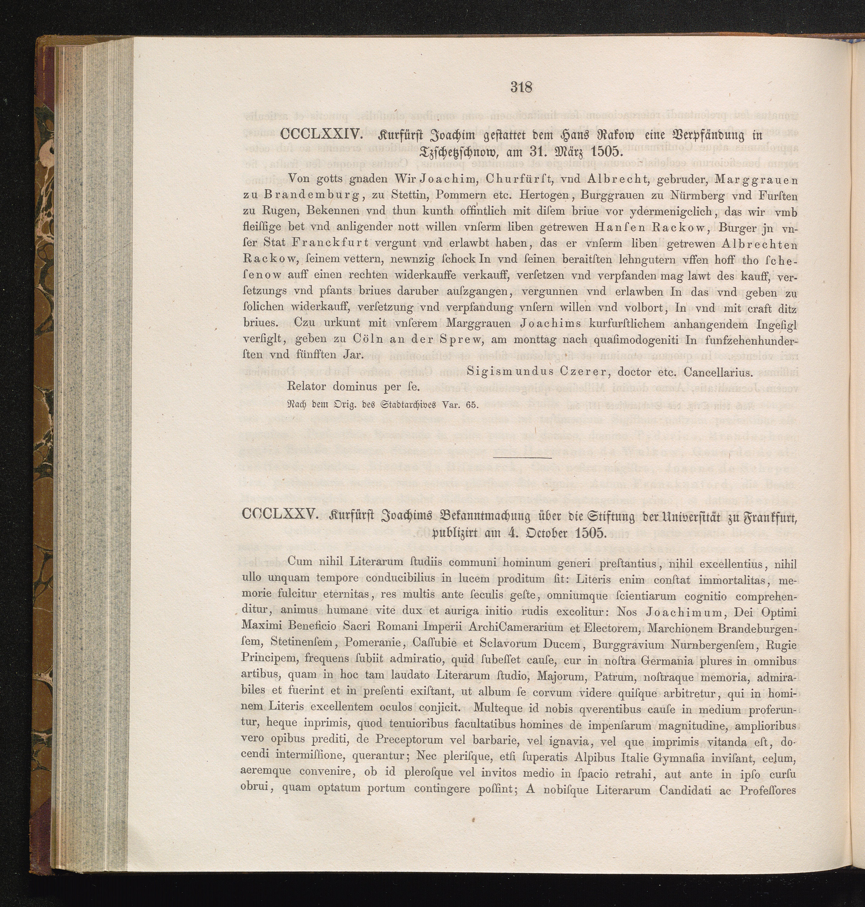 CCCLXXIV. Kurfürst Joachim gestattet dem Hans Rakow eine Verpfändung in Tzschetzschnow,[...]