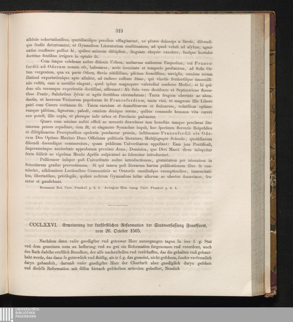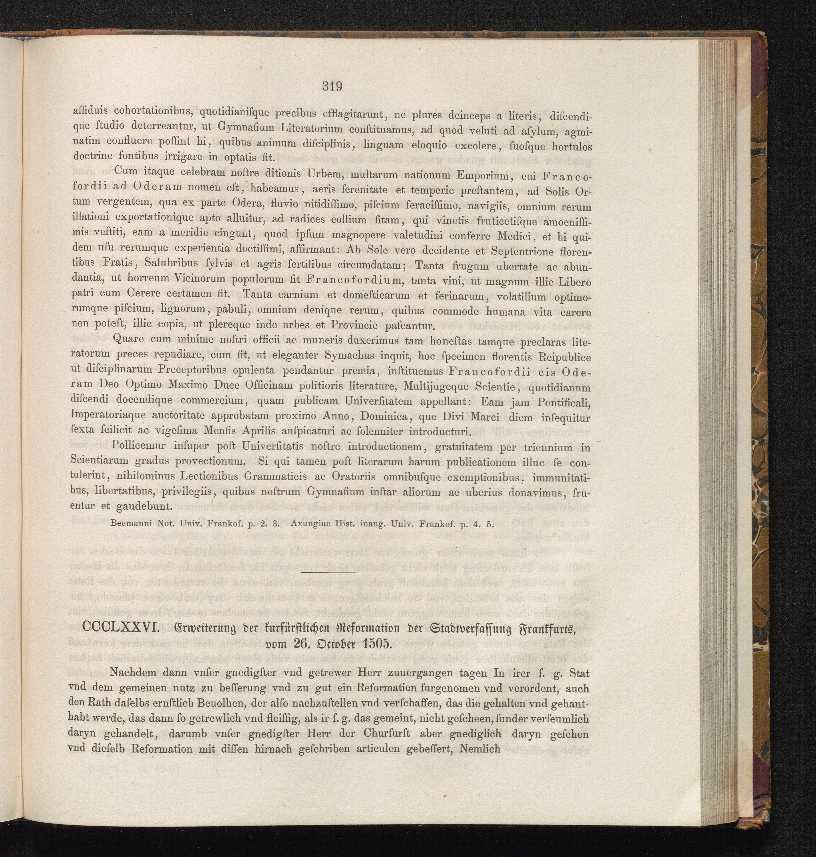 CCCLXXVI. Erweiterung der kurfüstlichen Reformation der Stadtverfassung Frankfurts,[...]