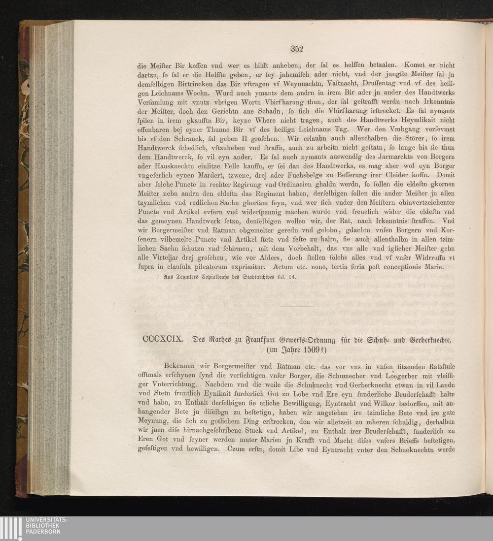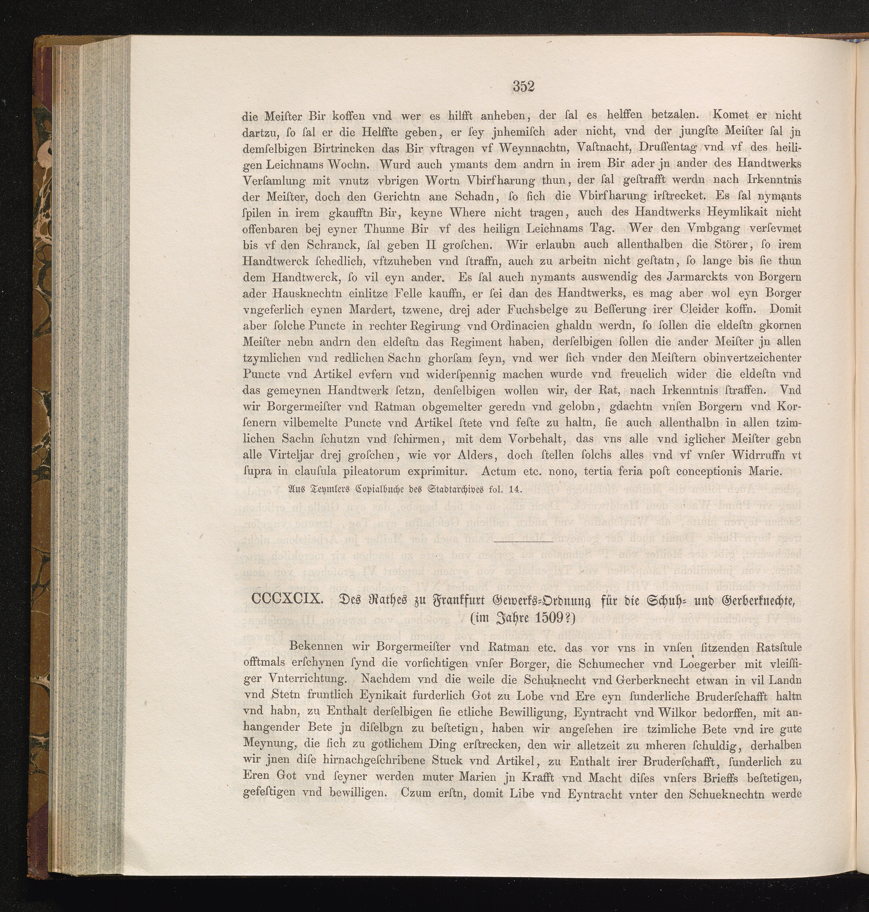 CCCXCIX. Des Rathes zu Frankfurt Gewerks-Ordnung für die Schuh- und Gerberknechte,[...]