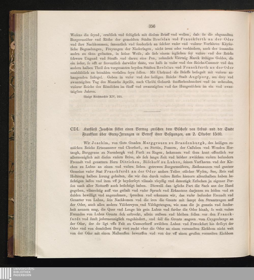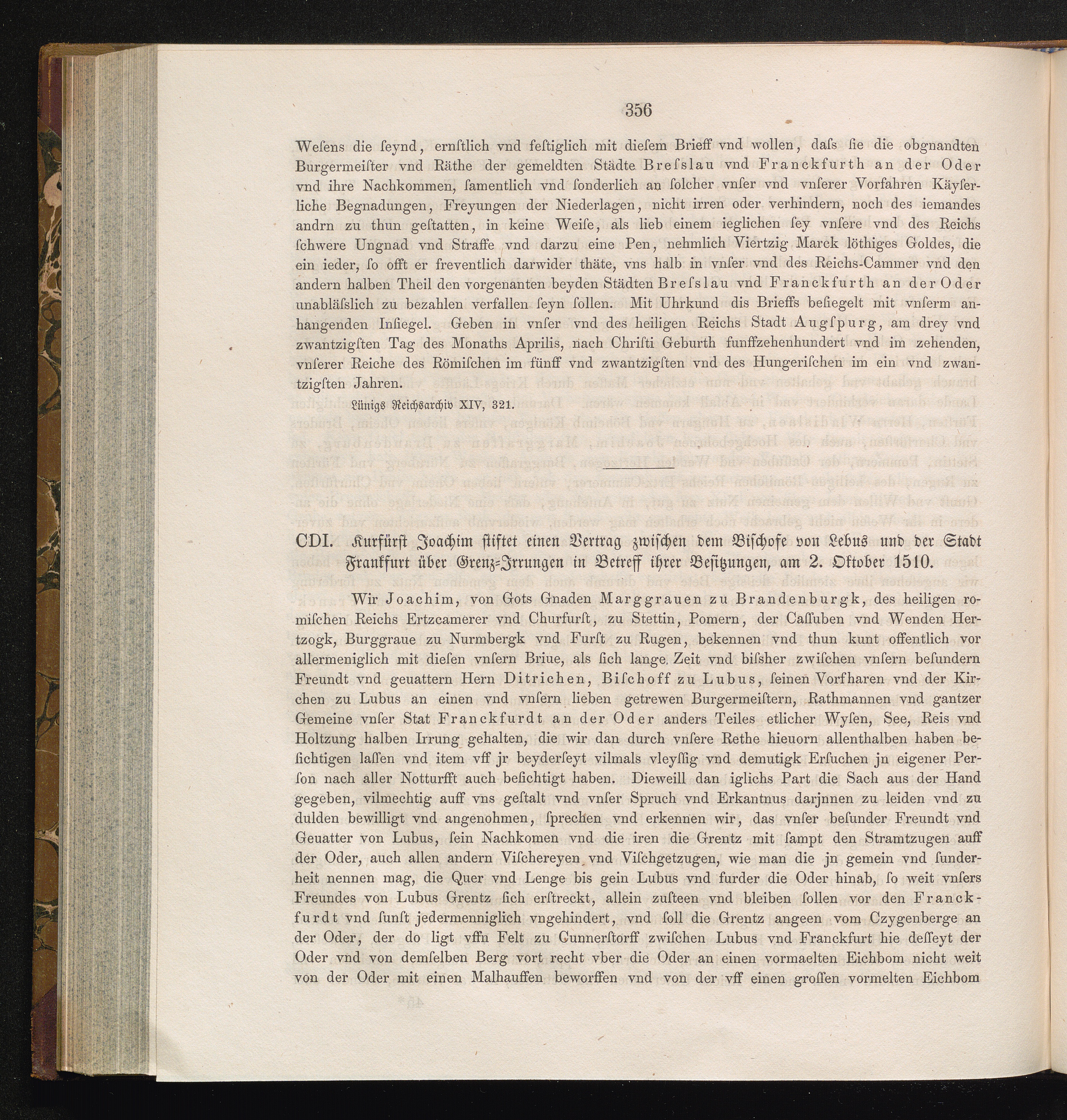 CDI. Kurfürst Joachim stiftet einen Vertrag zwischen dem Bischofe von Lebus und der[...]