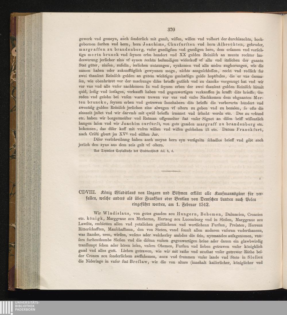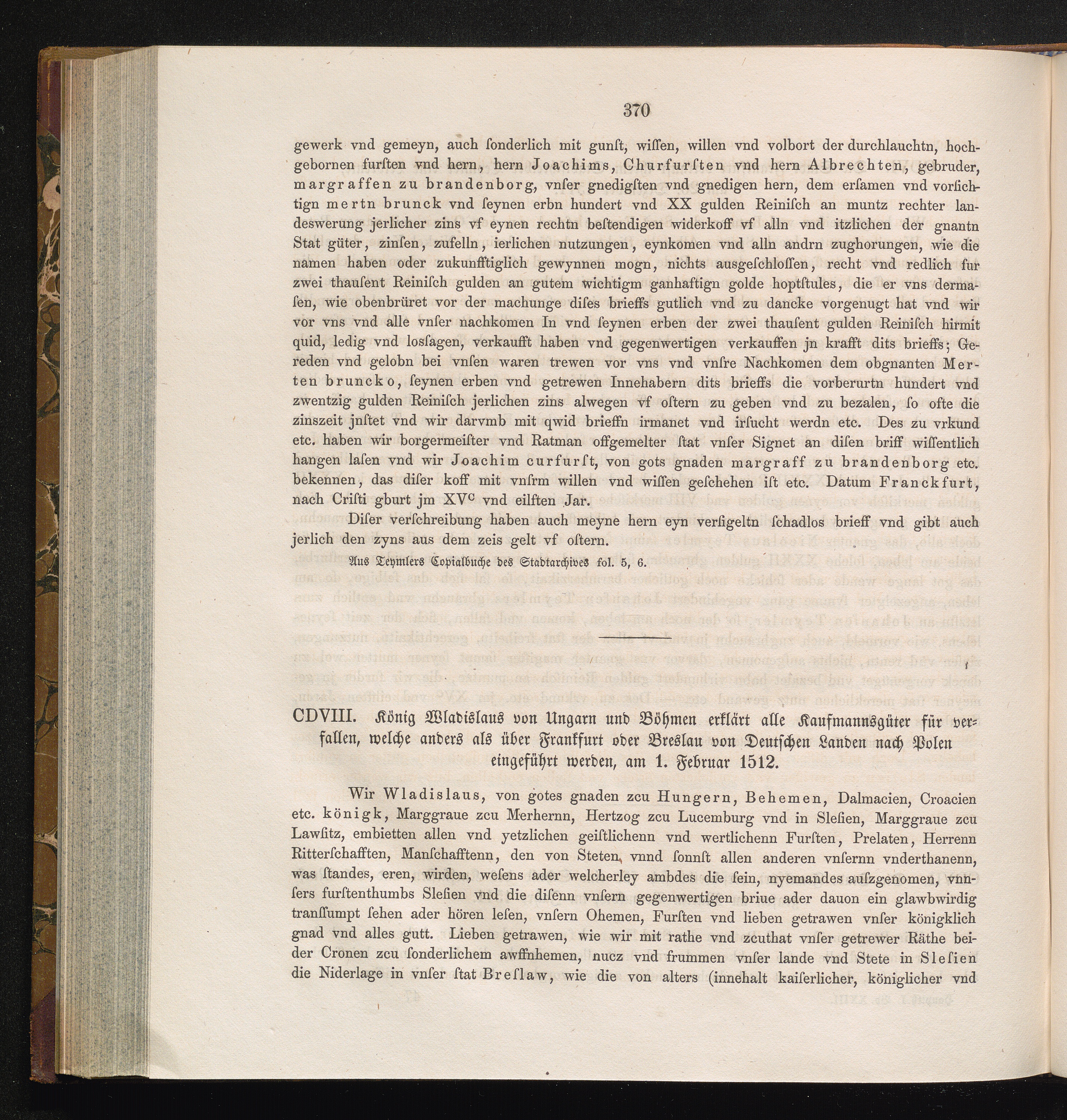 CDVIII. König Wladislaus von Ungarn und Böhmen erklärt alle Kaufmannsgüter für verfallen,[...]