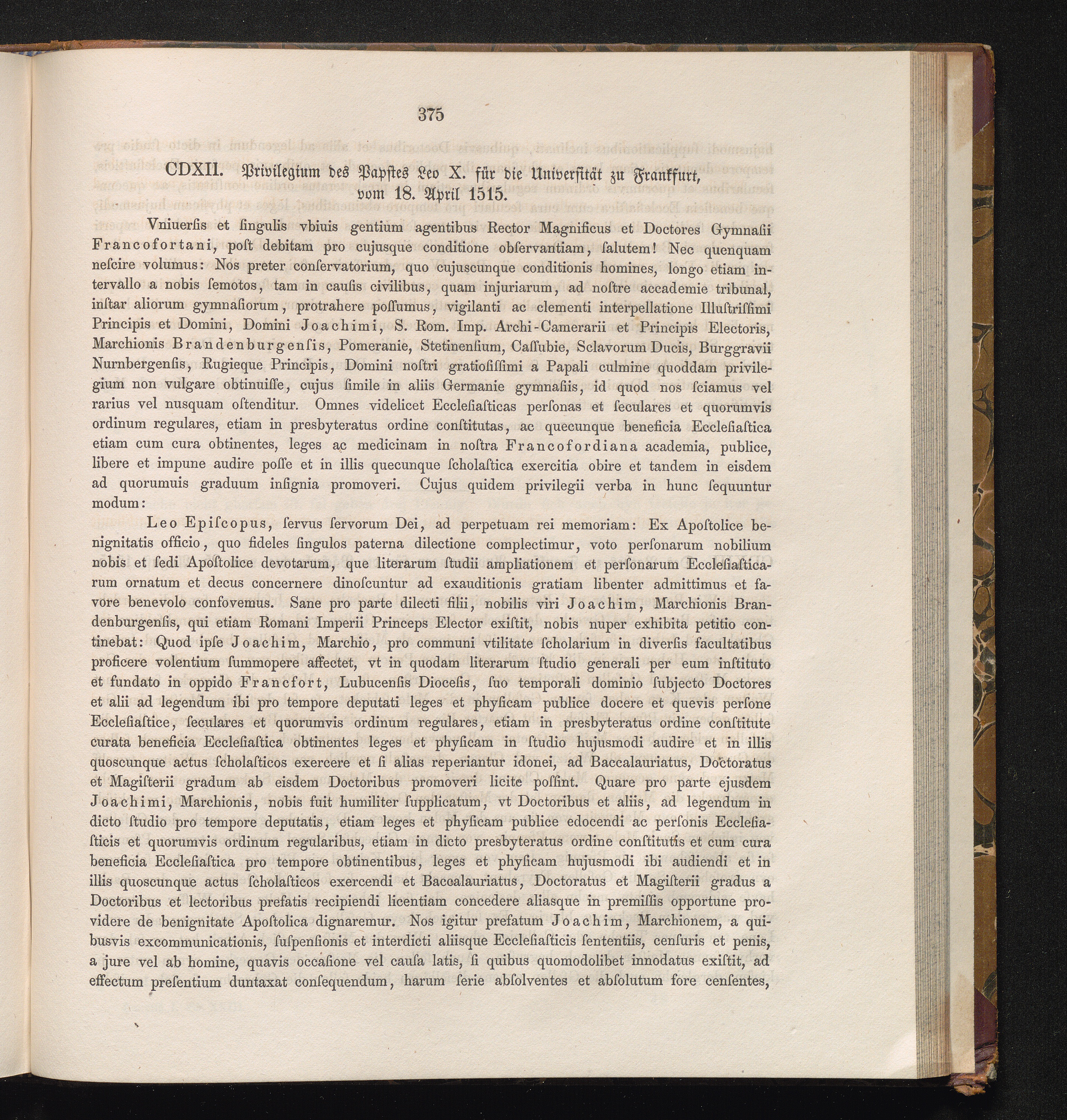 CDXII. Privilegium des Papstes Leo X. für die Universität zu Frankfurt, vom 18. April[...]