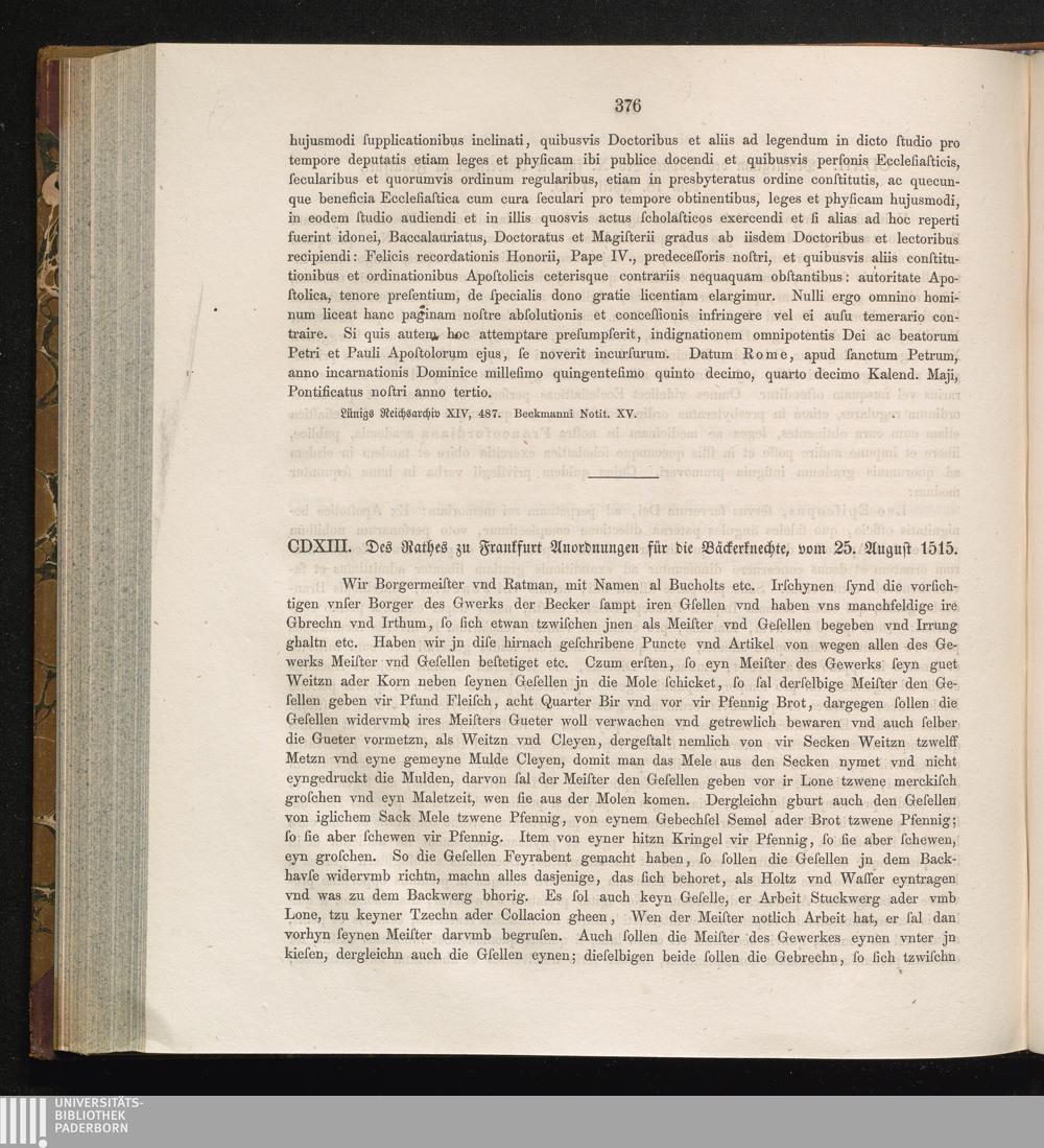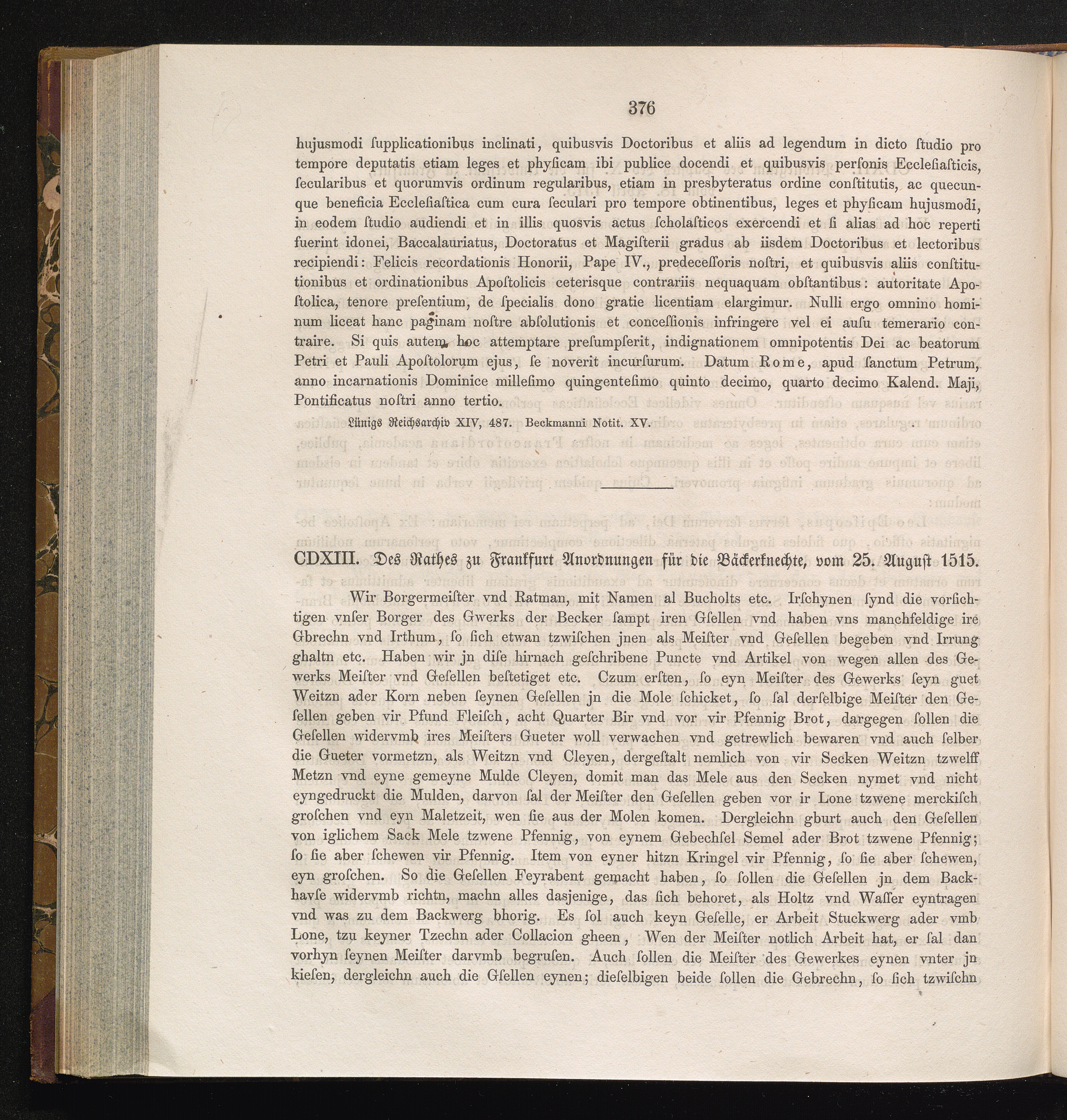 CDXIII. Des Rathes zu Frankfurt Anordnungen für die Bäckerknechte, vom 25. August[...]