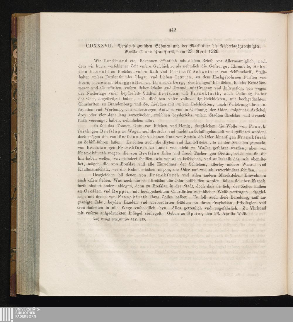 CDXXXVII. Vergleich zwischen Böhmen und der Mark über die Niederlagsgerechtigkeit[...]