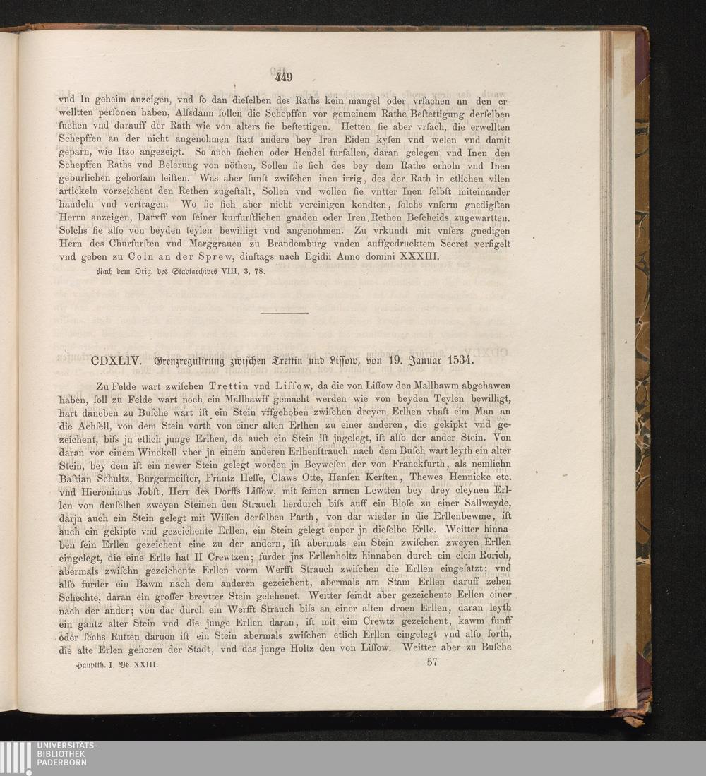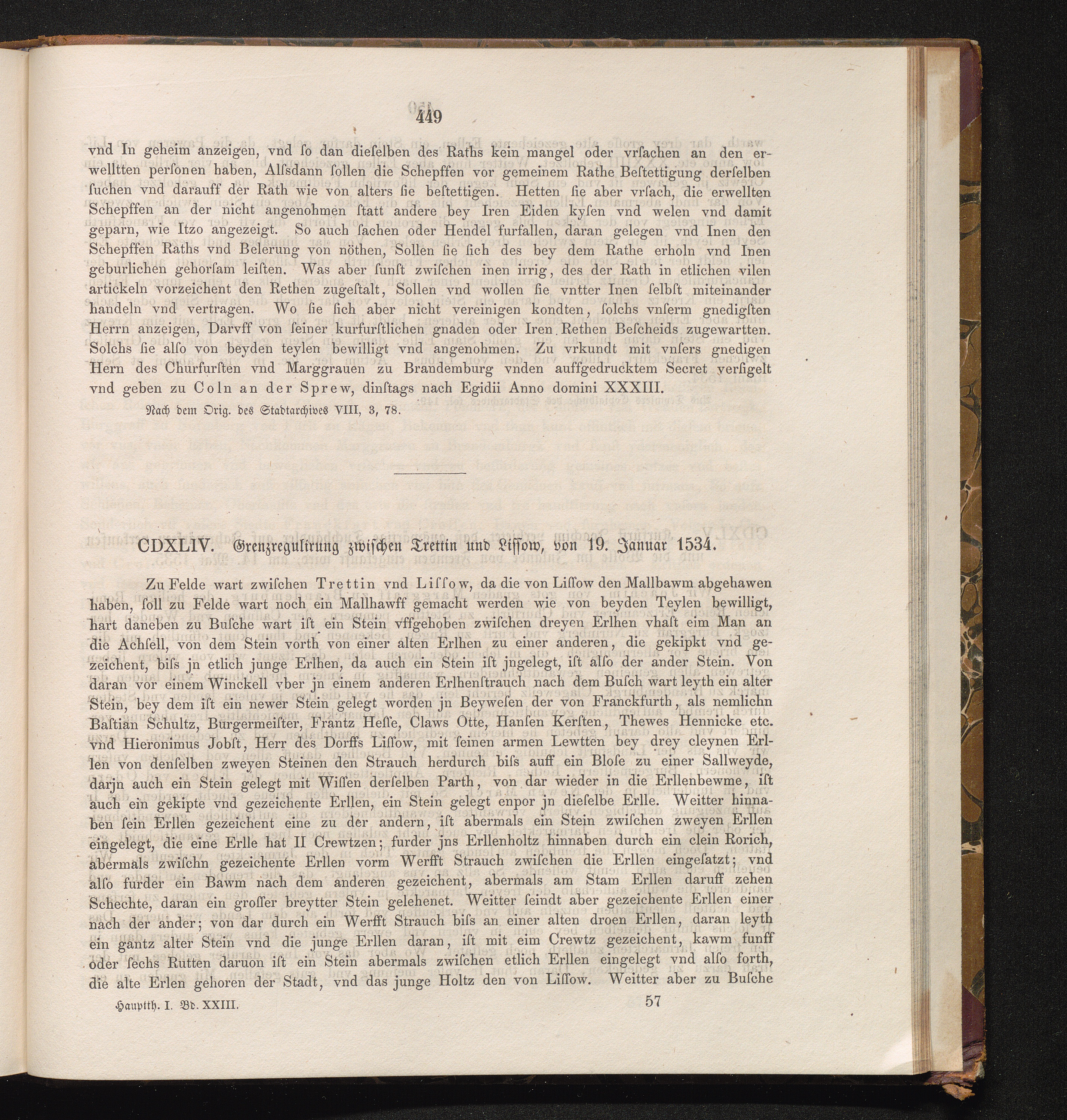 CDXLIV. Grenzregulierung zwischen Trettin und Lissow, von 19. Januar 1534.