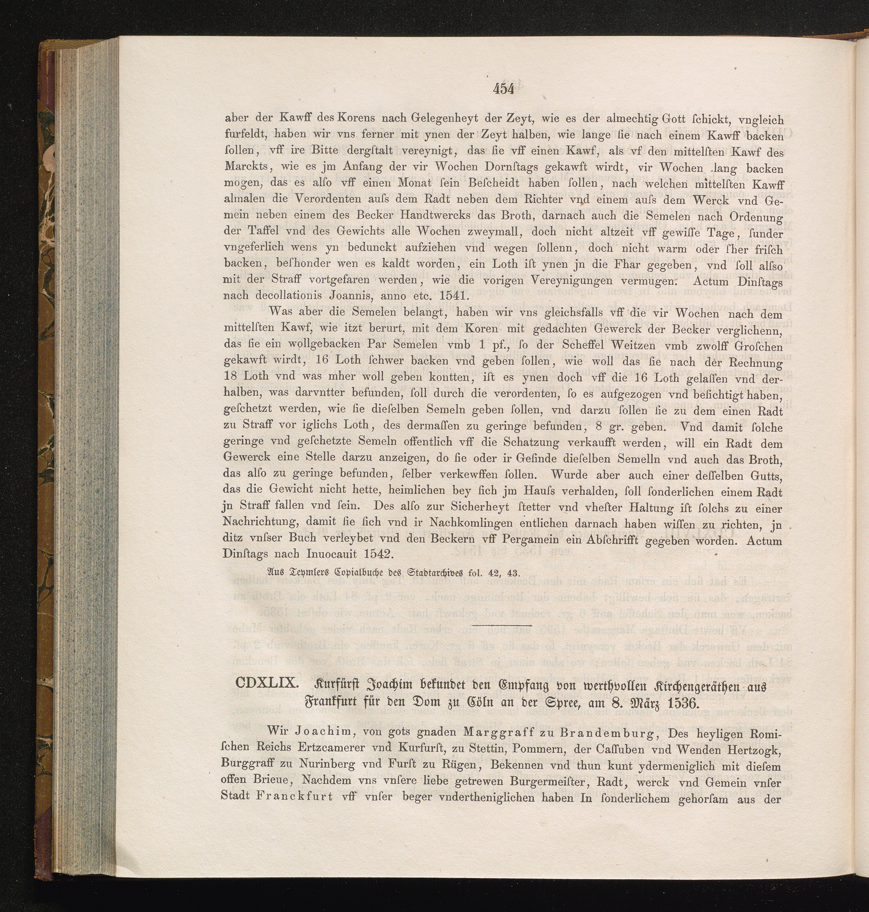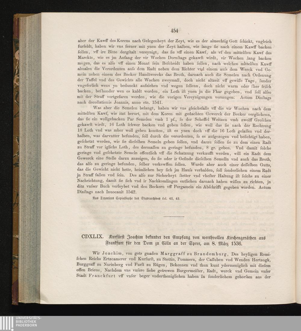 CDXLIX. Kurfürst Joachim bekundet den Empfang von werthvollen Kirchengeräthen aus[...]