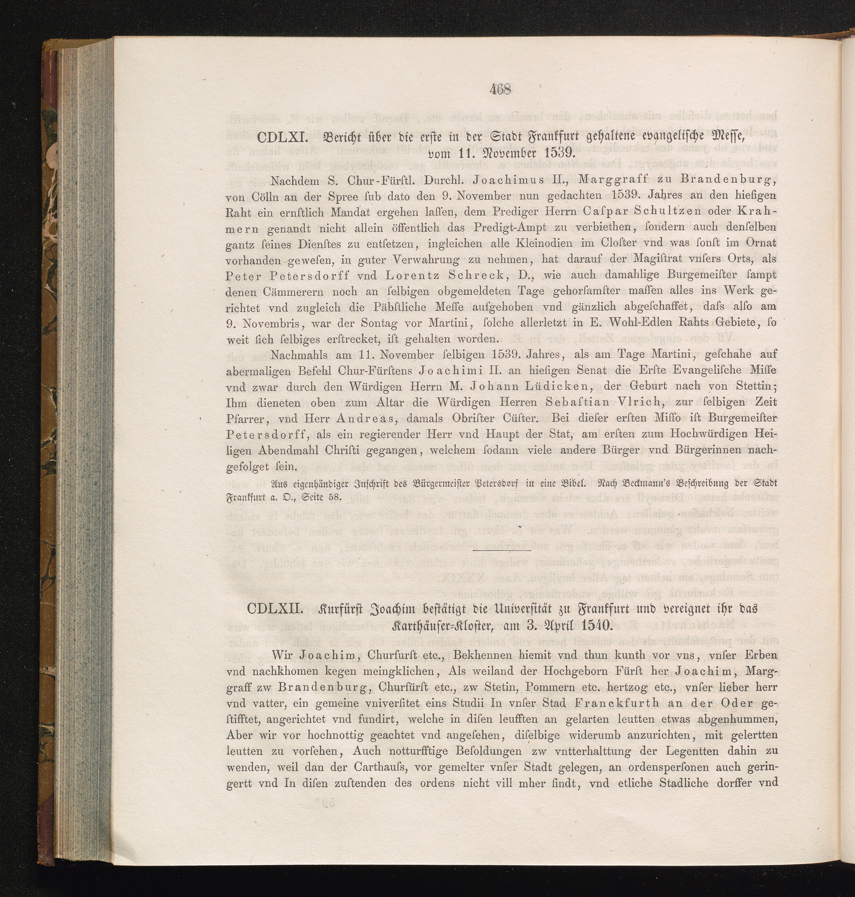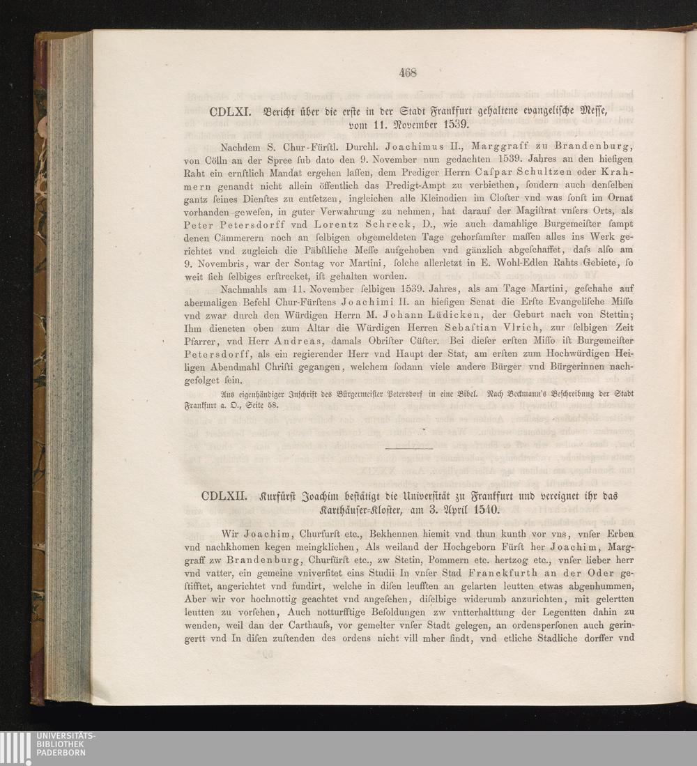 CDLXII. Kurfürst Joachim bestätigt die Universität zu Frankfurt und vereignet ihr[...]