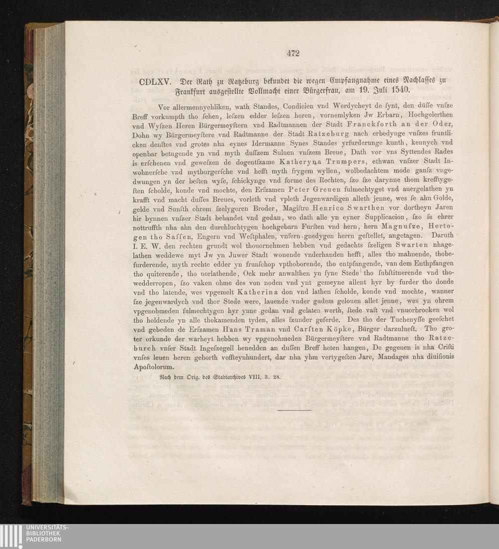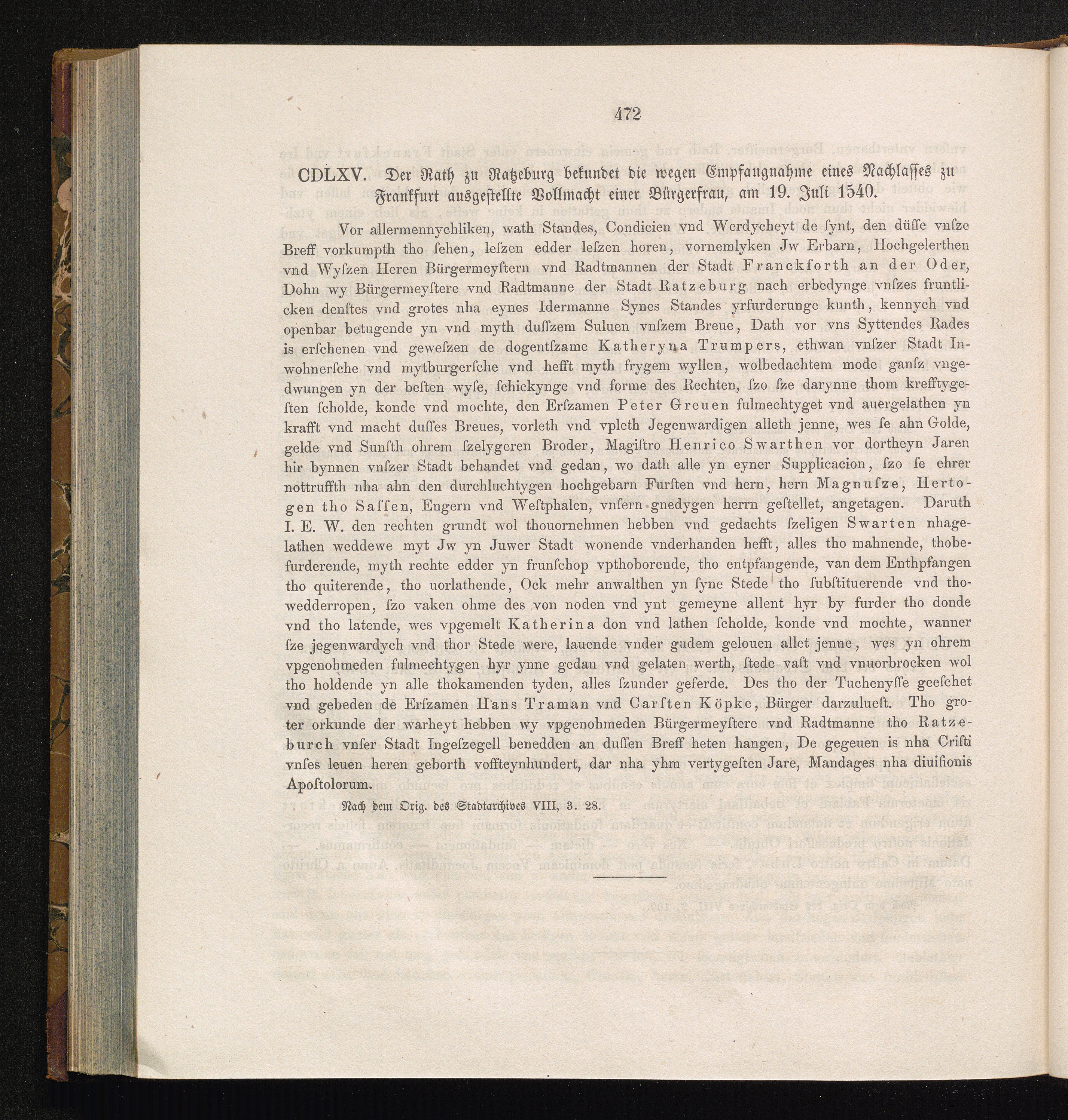 CDLXV. Der Rath zu Ratzeburg bekundet die wegen Empfangnahme eines Nachlasses zu[...]
